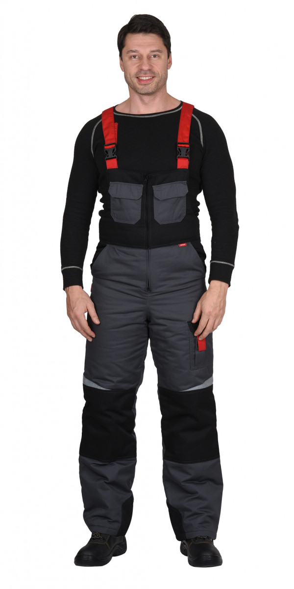 Куртка прямого силуэта, длинная, с притачной утеплённой подкладкой, с прокладкой из ткани "Лаке" Пристёгивающимся утеплённым капюшоном, с воротником стойка, Центральная застёжкамолния с ветрозащитной планкой на липучке, с подрезными бочками, с верхними фигурными карманами, с нижними прорезными карманами на "молнии". Низ регулируется при помощи хлястиков и липучки. Рукава резные, ширина внизу регулируется при помощи хлястиков и липучки. Полукомбинезон с притачной утеплённой подкладкой, с центральной потайной застёжкой на 2-х замковую тесьму "молнию", верхними накладными карманами с клапаном и нижними внутренними боковыми карманами На задней правой половинке один верхний и 2 нижних кармана для инструмента, настроченные один на другой, также предусмотрена шлёвка для инструмента. В костюме фигурно вставлена СОП "Vislite" шириной 50 мм. Ткань "Rodos" с ВО пропиткой, 65%-п/э, 35%-х/б, пл. 245 гр./кв.м. Подкладка: 100% п/э. Утеплитель: "Холлофайбер" 300 г/м2 ГОСТ Р 12.4.236-2011