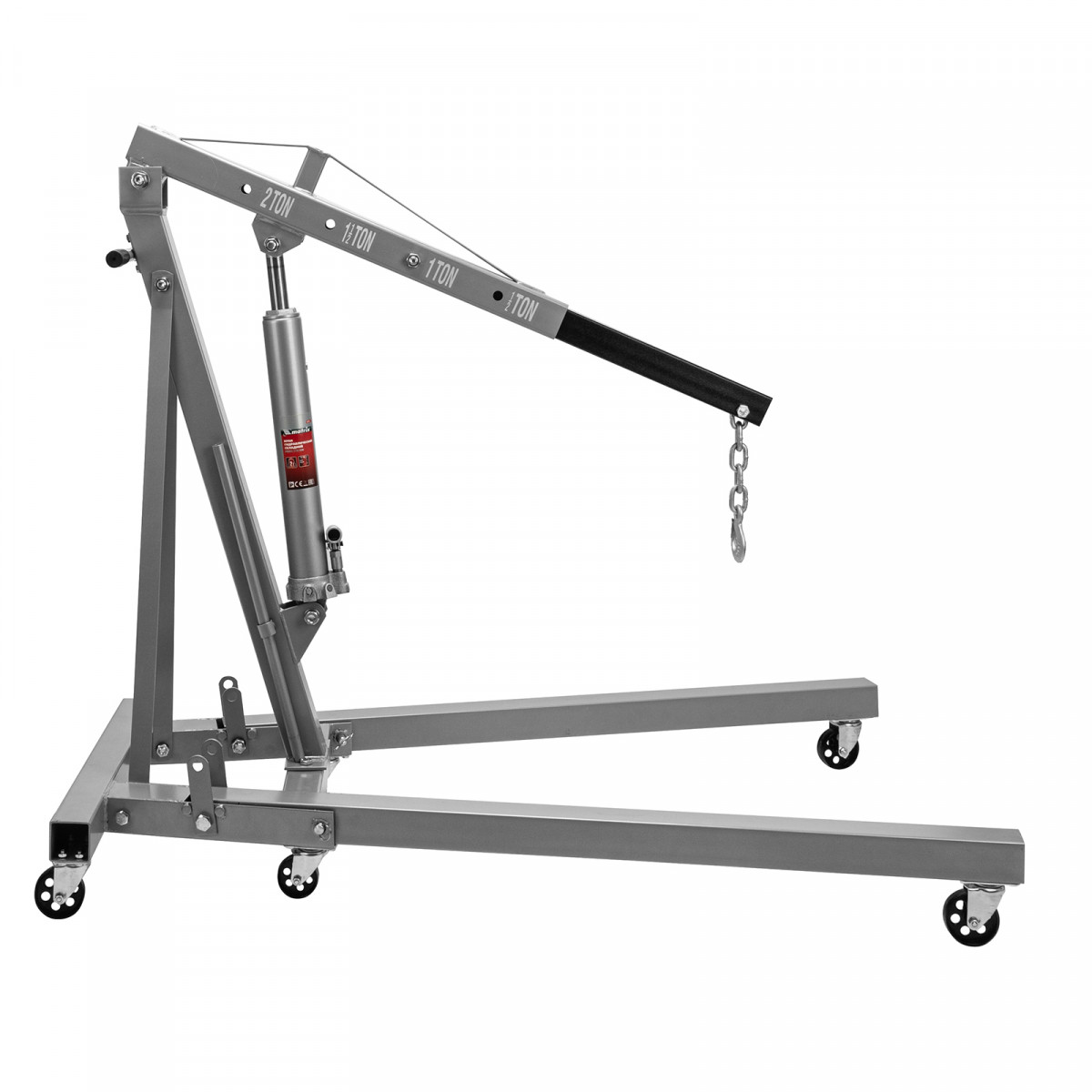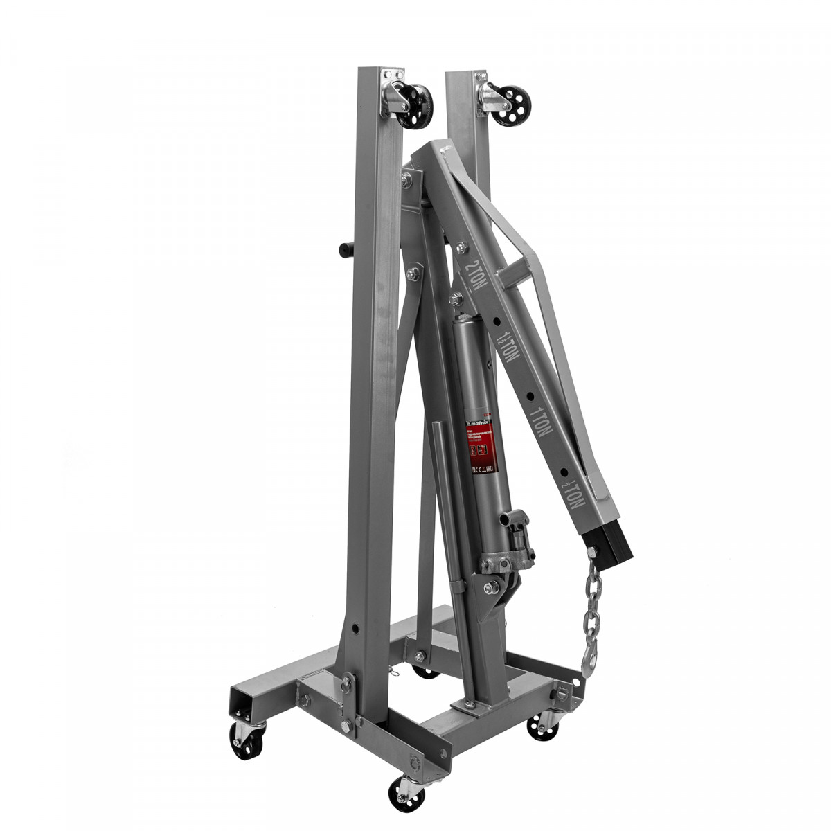 Складной гидравлический кран Matrix 567325 грузоподъемностью до 2 т, поставляющийся комплектом из 2 частей, — мобильное устройство для подъема на высоту с 25 до 2200 мм и перемещения тяжелых элементов автомобильного оборудования. Устройство изготовлено из стали и выдерживает повышенные нагрузки. Величина вылета стрелы регулируется в зависимости от массы груза. Кран совместим с траверсой Matrix 567275. Используется в автосервисах для демонтажа и монтажа автомобильных двигателей, будет полезен и в частном гараже.