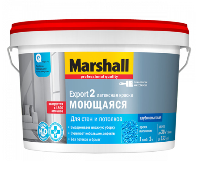 Не имеет резкого запаха.Глубокоматовая водно-дисперсионная краска для стен и потолков.