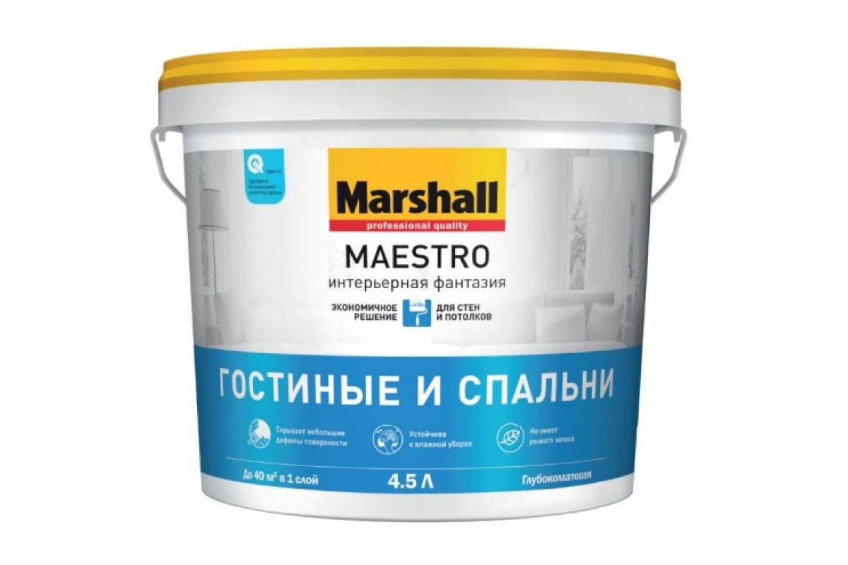 Краска Marshall MAESTRO Интерьерная фантазия гостиные и спальни белая BW 4,5л