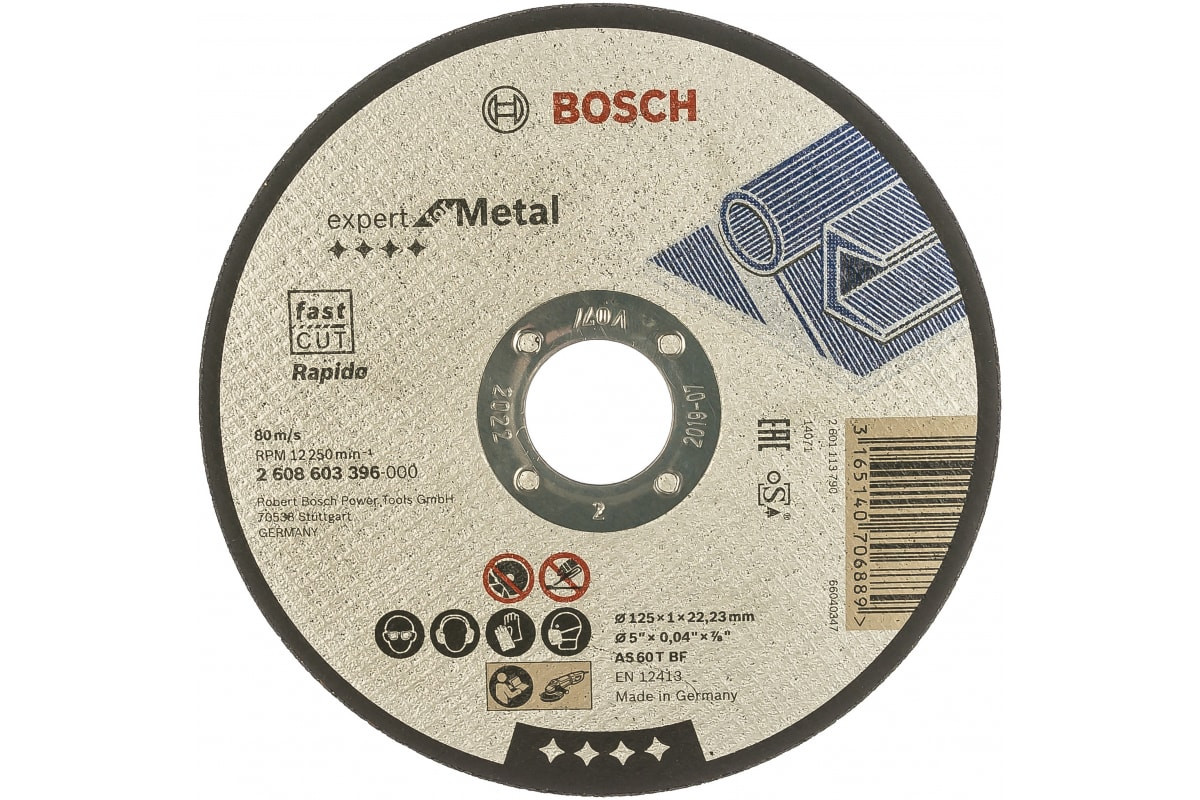 Диск Bosch 2608603396 получил наружный диаметр 125 мм. От этого параметра зависит совместимость с рядом оборудования. Толщина изделия составляет 1 мм. Круг имеет посадочный диаметр 22.23 мм. Установка занимает немного времени, удается быстро выполнить замену оснастки.