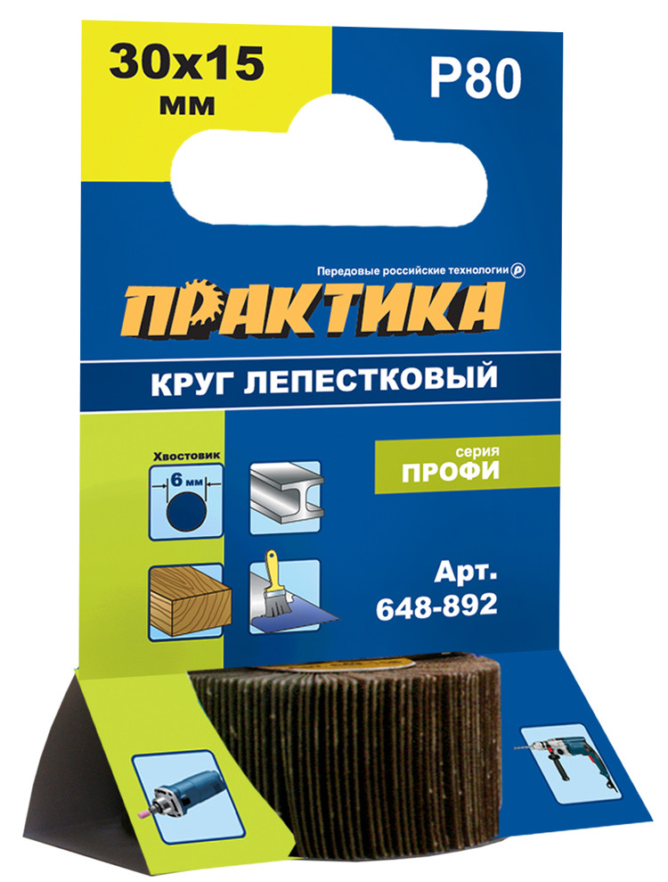 Круг 30х15мм P80 лепестковый с оправкой ПРАКТИКА хвостовик 6 мм серия Профи