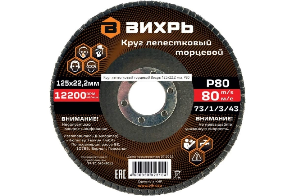 Круг лепестковый торцевой Р80 ВИХРЬ 125х22,2 мм