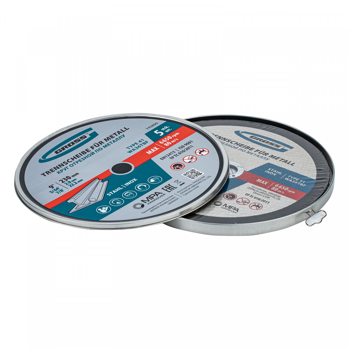 Круг отрезной по металлу, 230 х 2,0 х 22,2 мм, WA36TBF, в метал.банке, 5 шт. Gross