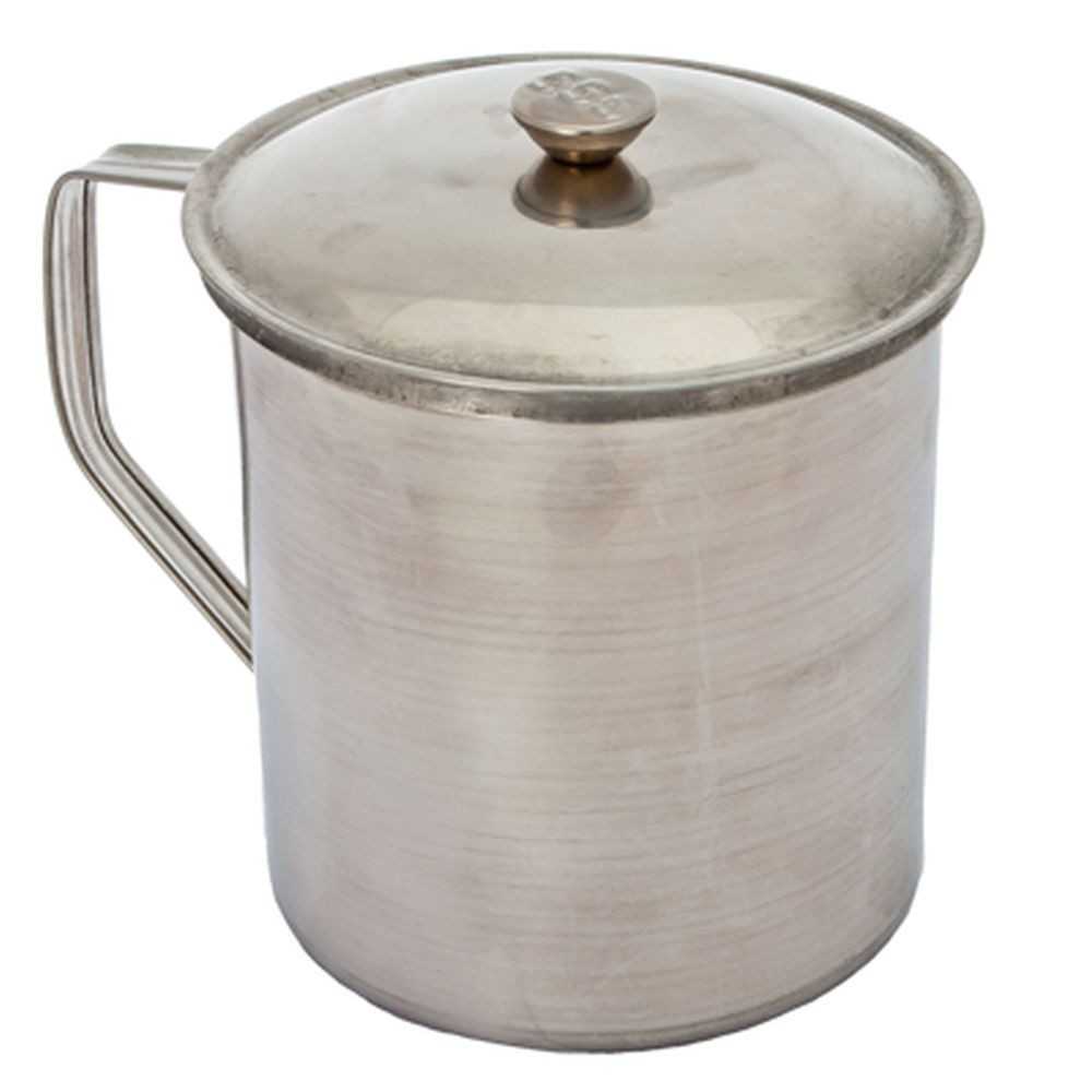 Прочная кружка из нержавеющей стали обладает диаметром 10 см.