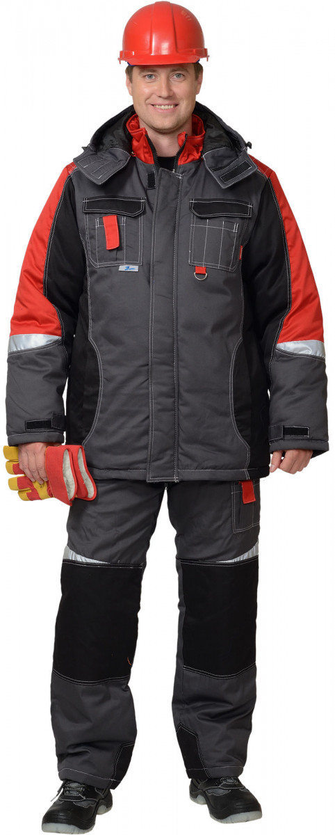 Куртка зимняя ФАВОРИТ-МЕГА темно-серая/черная/красная СОП