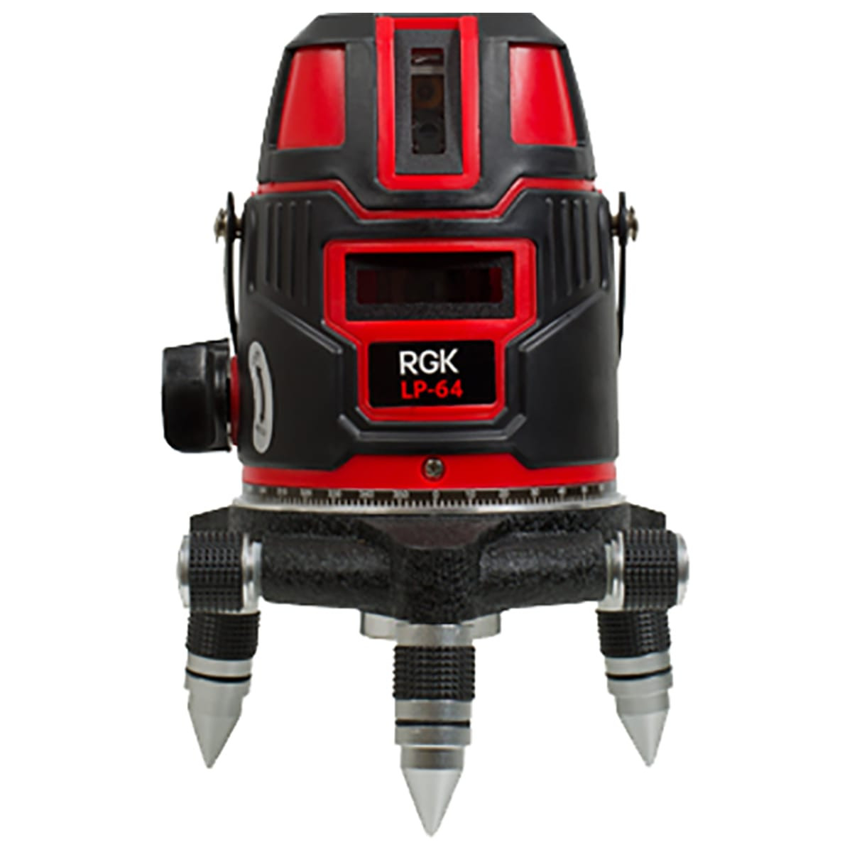 Лазерный уровень RGK LP-64 – современный построитель плоскостей, предназначенный для разметочных работ внутри помещения. Видимая дальность действия лазера составляет 20 метров с точностью ±0,2 мм/м. Функциональные характеристики лазерного нивелира RGK LP-64 позволяют использовать его для проведения большинства разметочных и монтажных и отделочных работ: Установка оконных и дверных проемов. Монтаж навесных потолков. Укладка плитки. Выравнивание полов. Установка гипсокартонных перекрытий и так далее. Лазерная система нивелира RGK LP-64 представлена пятью мощными диодными излучателями: четыре для построения вертикальных плоскостей с углом развертки 120° и один для горизонтальной 110°. Работать с лазерными лучами можно в нескольких конфигурациях: Только горизонтальная плоскость – активируется по умолчанию при включении прибора. Горизонтальная и вертикальная образующие перекрестие. Горизонтальная и две вертикальных. Горизонтальная и четыре вертикальных. Только вертикальные (одна, две, или четыре). При активации