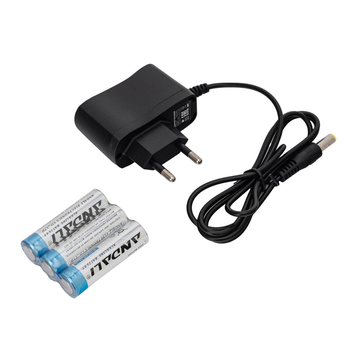 - Работа в любых условиях — лазер комплектуется 3 батарейками типа АА, также возможна работа от сети (адаптер прилагается).