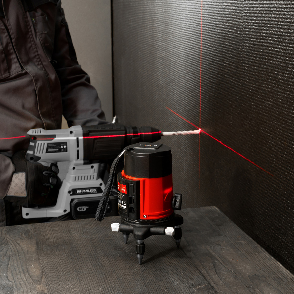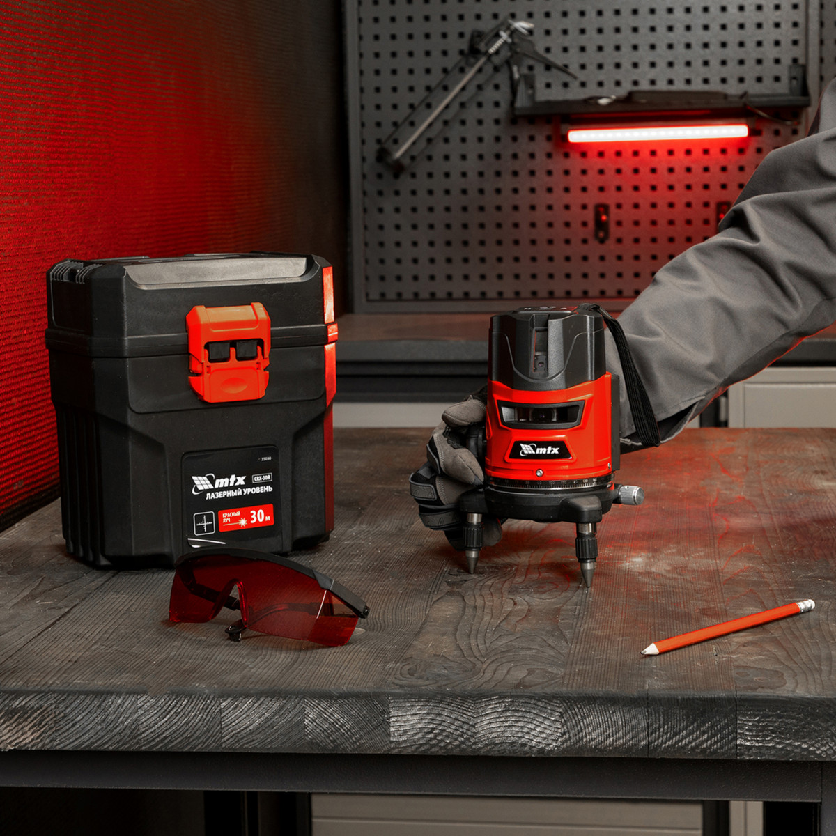 Лазерный уровень MTX CRX-30R 35030 с красным лучом, резьбой под штатив 5/8″, в комплекте с батарейками, проецирует на поверхность горизонтальную, вертикальную линии или крест дальностью до 30 м. Используется при проведении бытовых ремонтно-строительных работ в помещениях. Погрешность измерений составляет всего лишь ±1,5 мм 5 м.