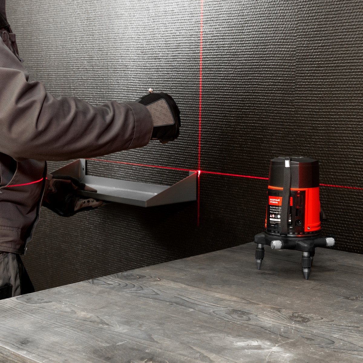 - Поворотное основание — можно плавно и точно наводить вертикальные лучи на нужный участок поверхности.