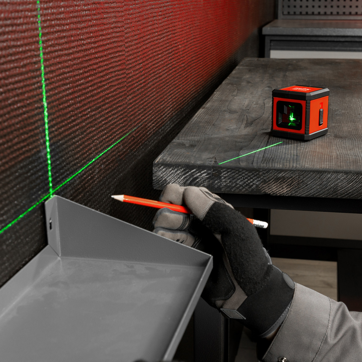 - Надежность и долговечность — корпус дополнен специальными прорезиненными гранями, демпфирующими при падении лазерного уровня.