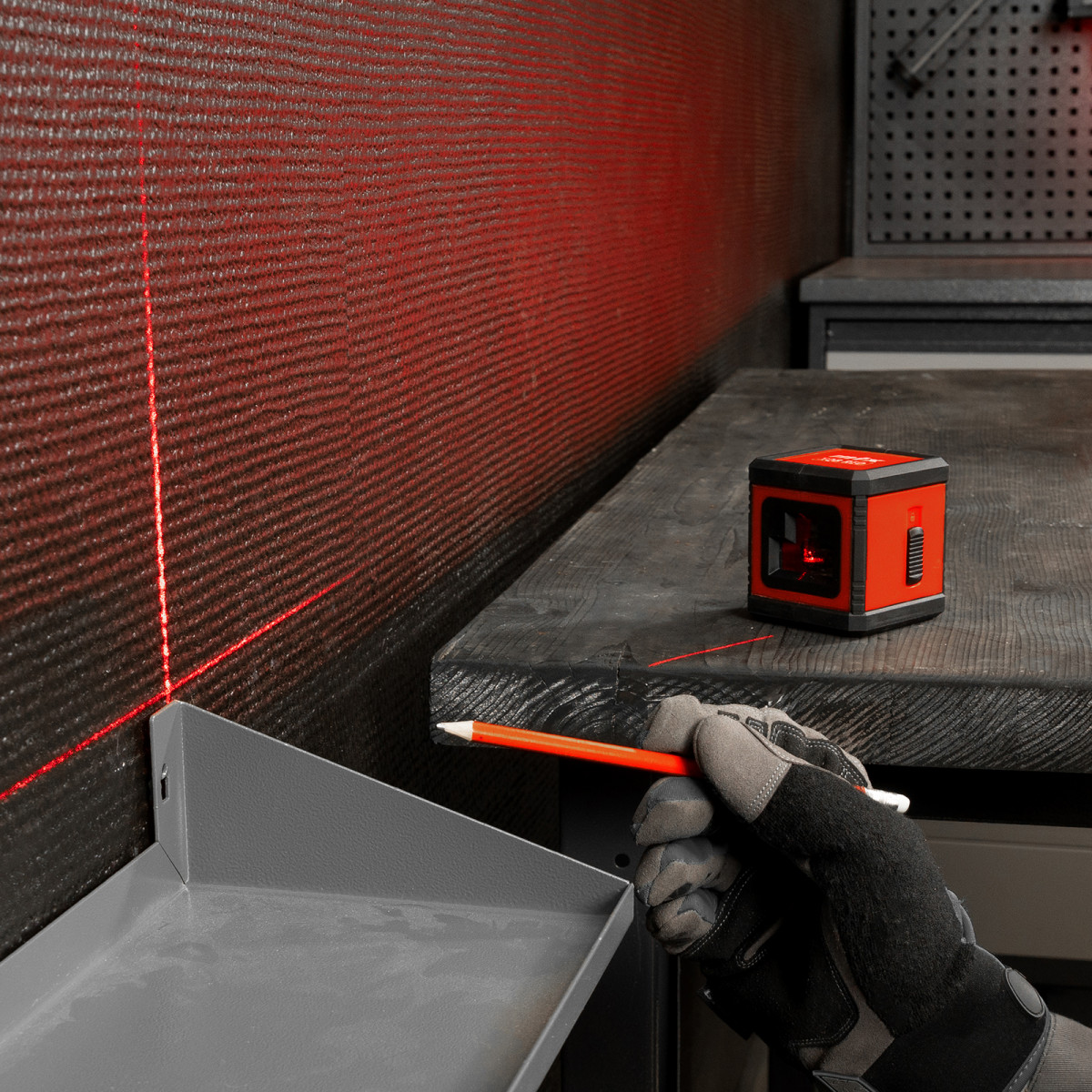 Лазерный уровень MTX XQB RED Basic SET 35018 с красным лучом, резьбой под штатив 1/4″, в комплекте с 3 батарейками ААА, проецирует на поверхность горизонтальную и вертикальную линии (крест) дальностью до 10 м. Незаменим при выполнении ремонтно-строительных работ в помещениях, подходит для бытового применения.