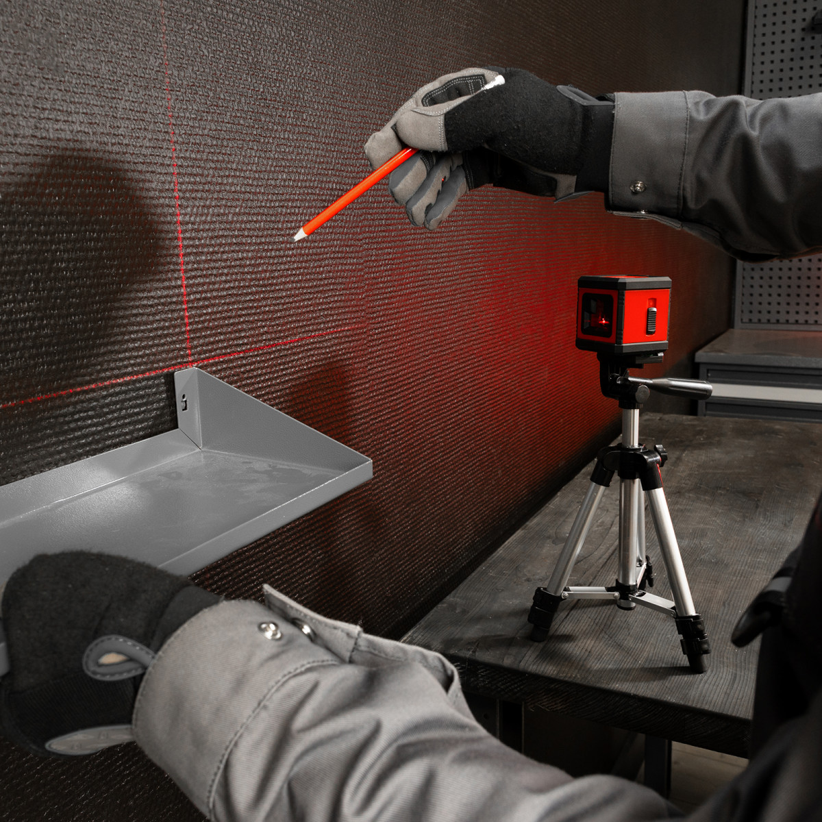 Лазерный уровень MTX XQB RED Pro SET 350185 с красным лучом, в комплекте с 3 батарейками ААА и штативом, проецирует на поверхность горизонтальную и вертикальную линии (крест) дальностью до 10 м. Незаменим при выполнении ремонтно-строительных работ в помещениях, подходит для бытового применения.