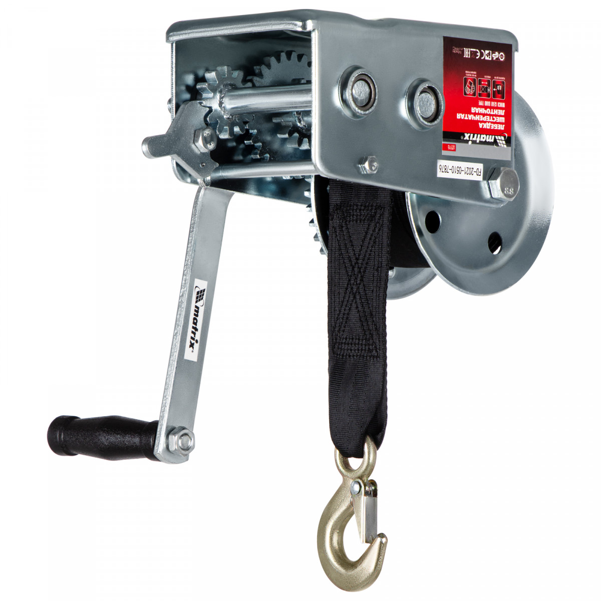 Лебедка шестеренчатая, тяга 0.8 т, ленточная Matrix