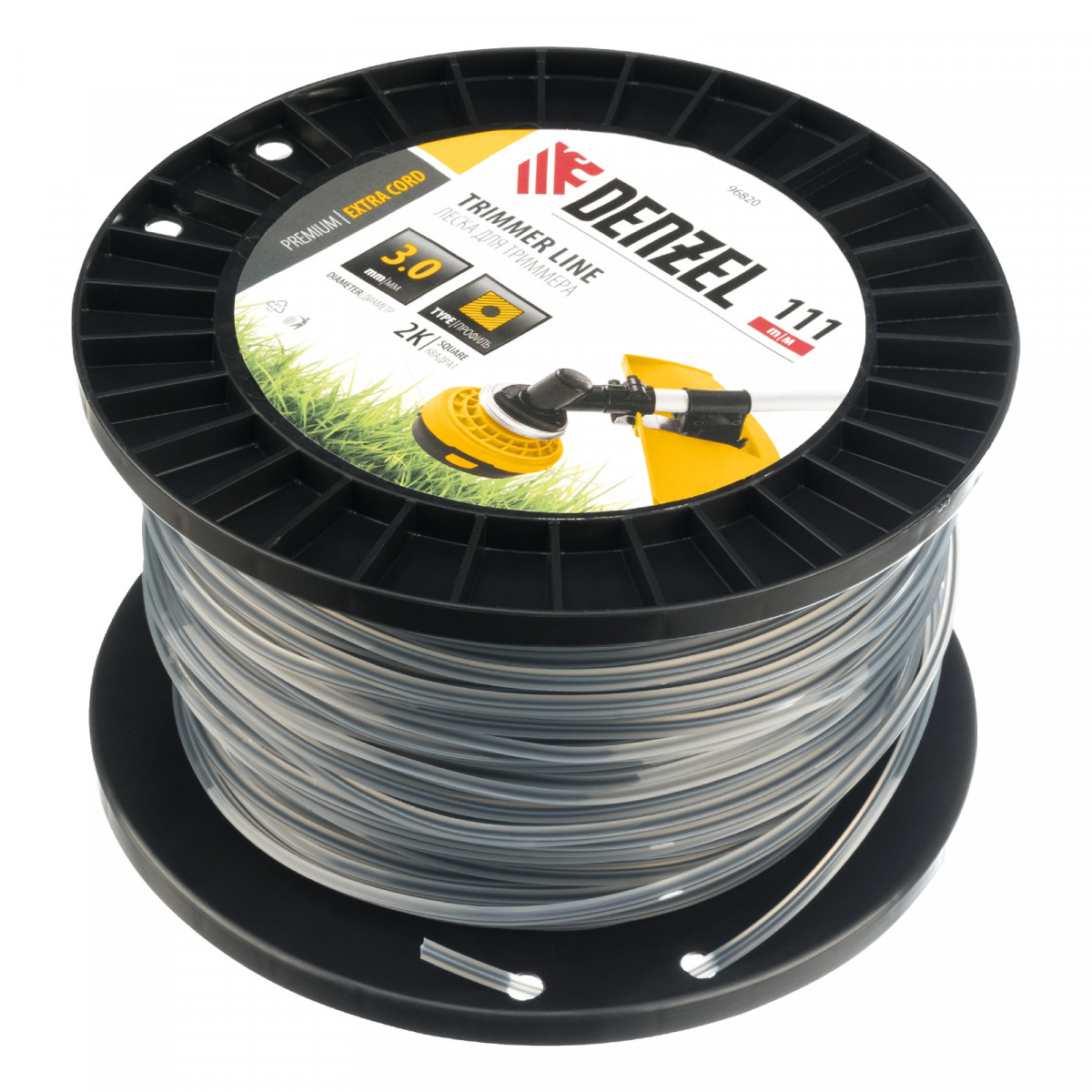 Леска для триммера двухкомпонентная квадрат, 3,0мм х 111м, на DIN катушке EXTRA CORD Denzel
