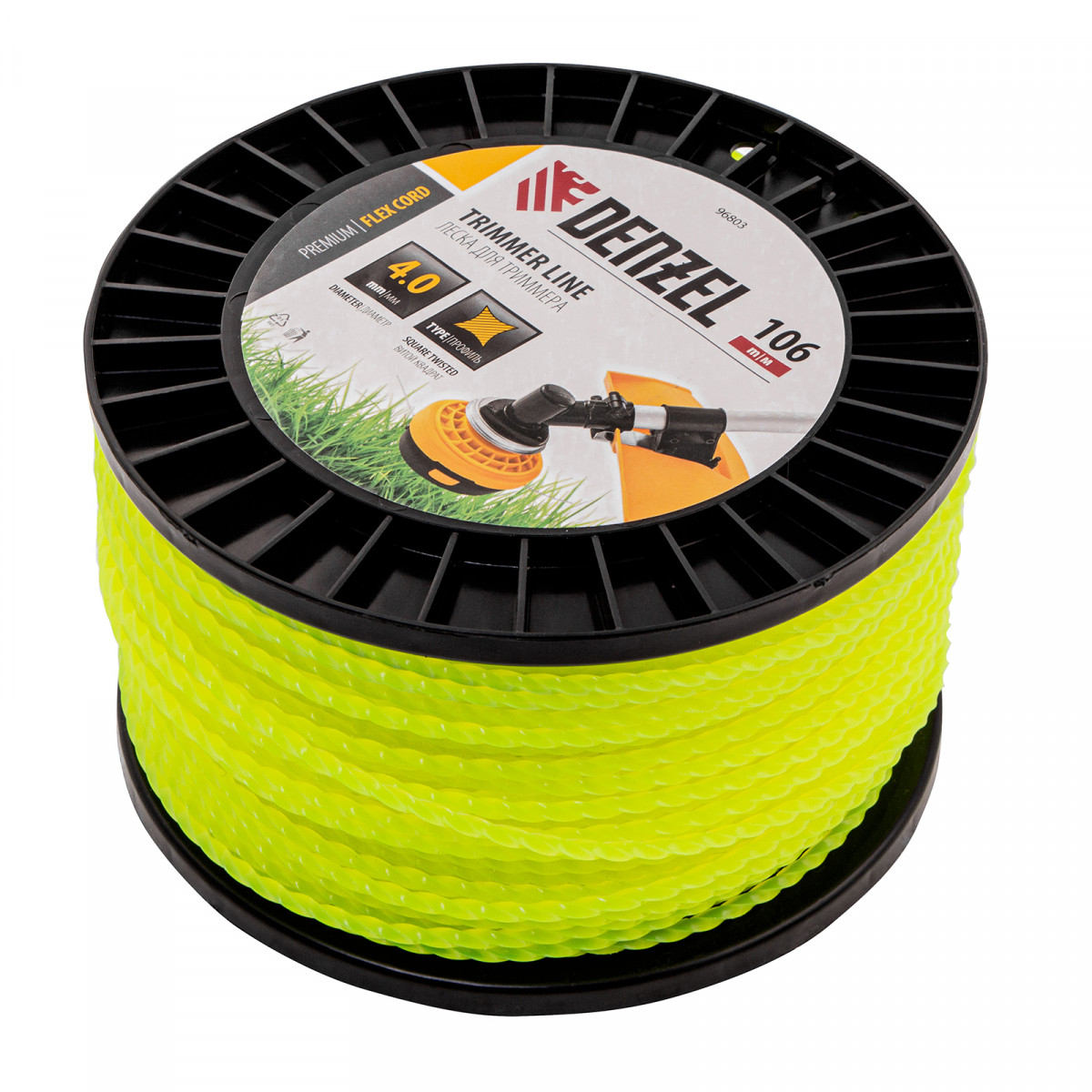 Леска для триммера витой квадрат, 4,0мм х 106м, на DIN катушке FLEX CORD Denzel