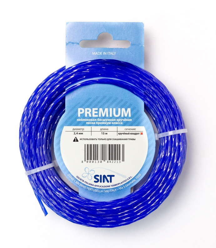 Леска триммерная SIAT PREMIUM D 2,4 мм 15м крученый квадрат