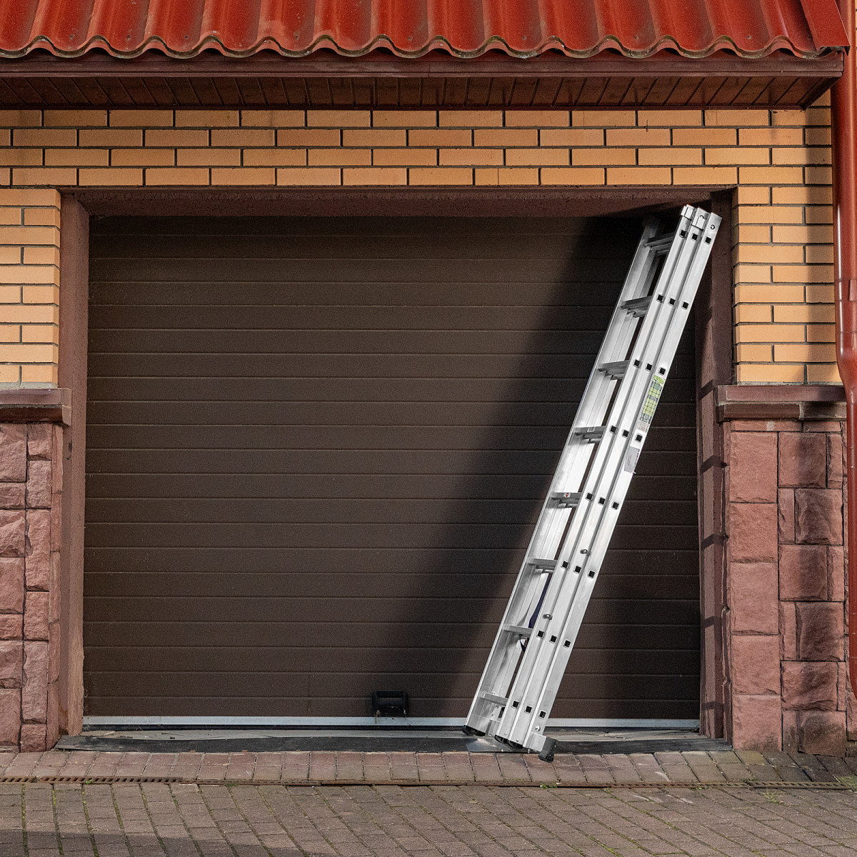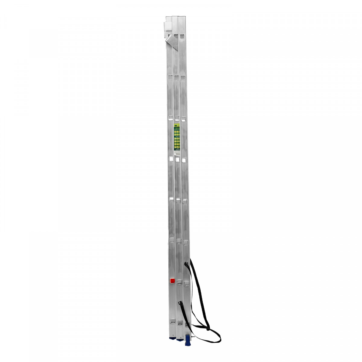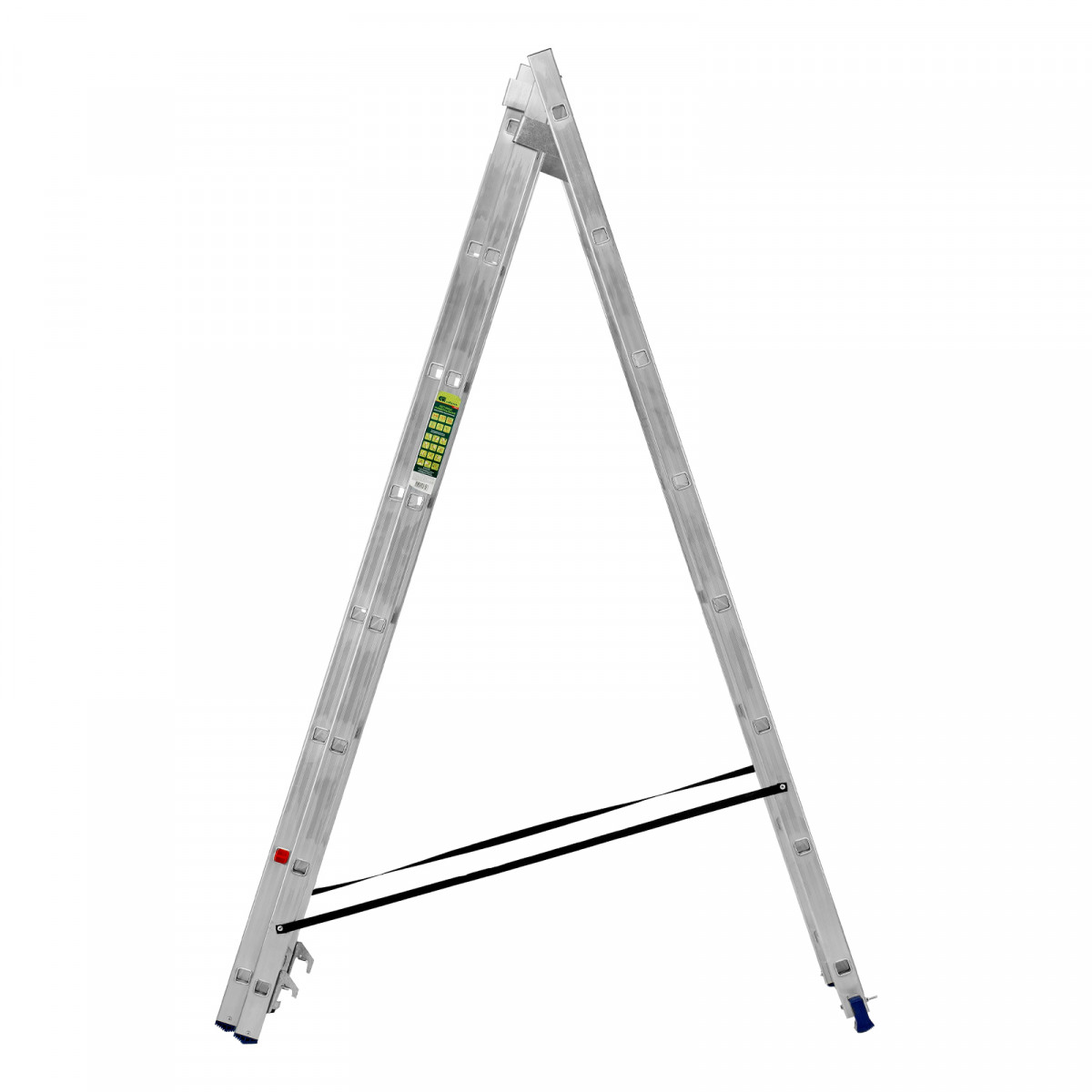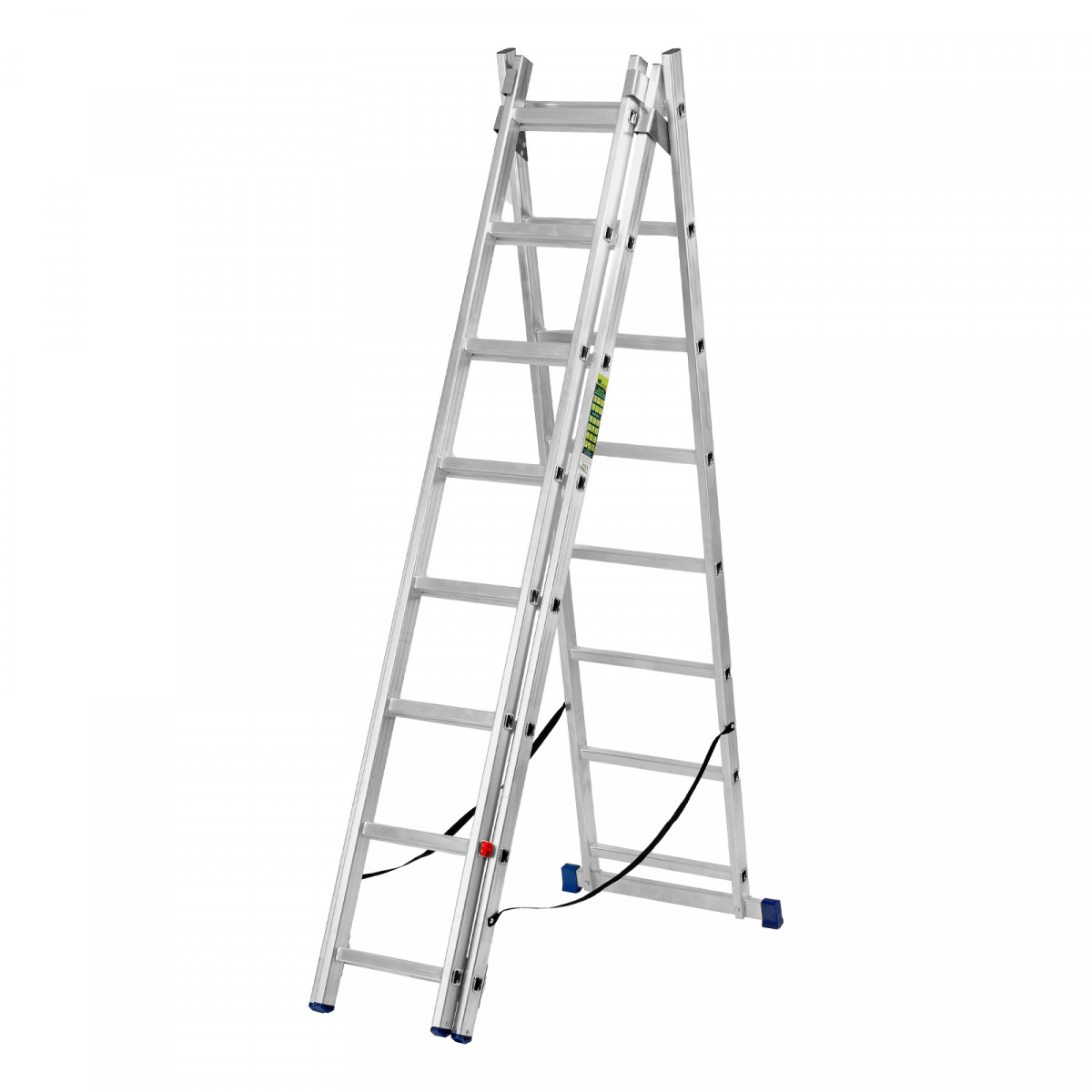 • Многофункциональность — лестница может использоваться в 3 различных вариациях — в качестве стремянки (с двумя расставленными и одной выдвинутой вверх секцией), двухсторонней стремянки (две секции расставлены, третья демонтирована) и приставной лестницы.