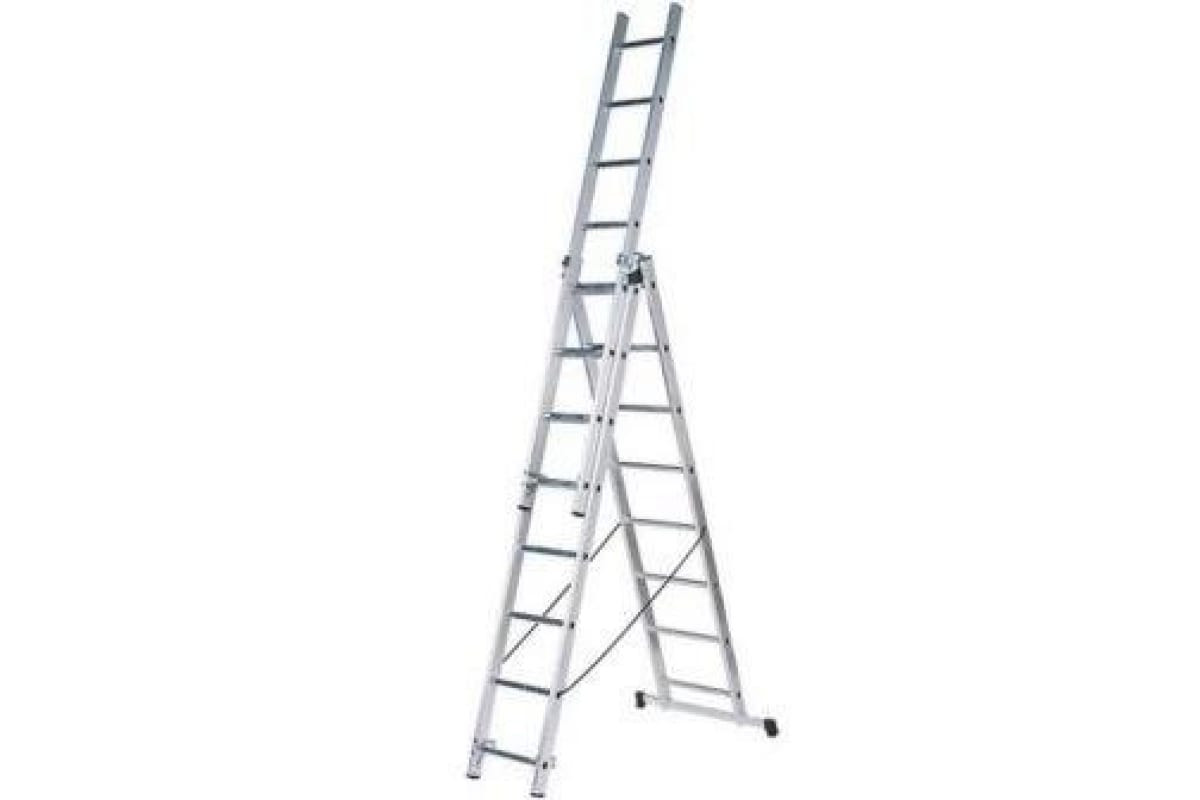 -Алюминиевая трёхсекционная лестница имеют возможность трансформироваться, в зависимости от выполняемых работ. Выдерживает нагрузку до 150 кг.