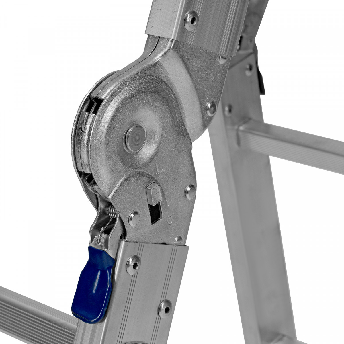 - Надежные шарнирные механизмы — лестница не шатается в рабочих положениях, смена рабочих положений происходит быстро и легко.