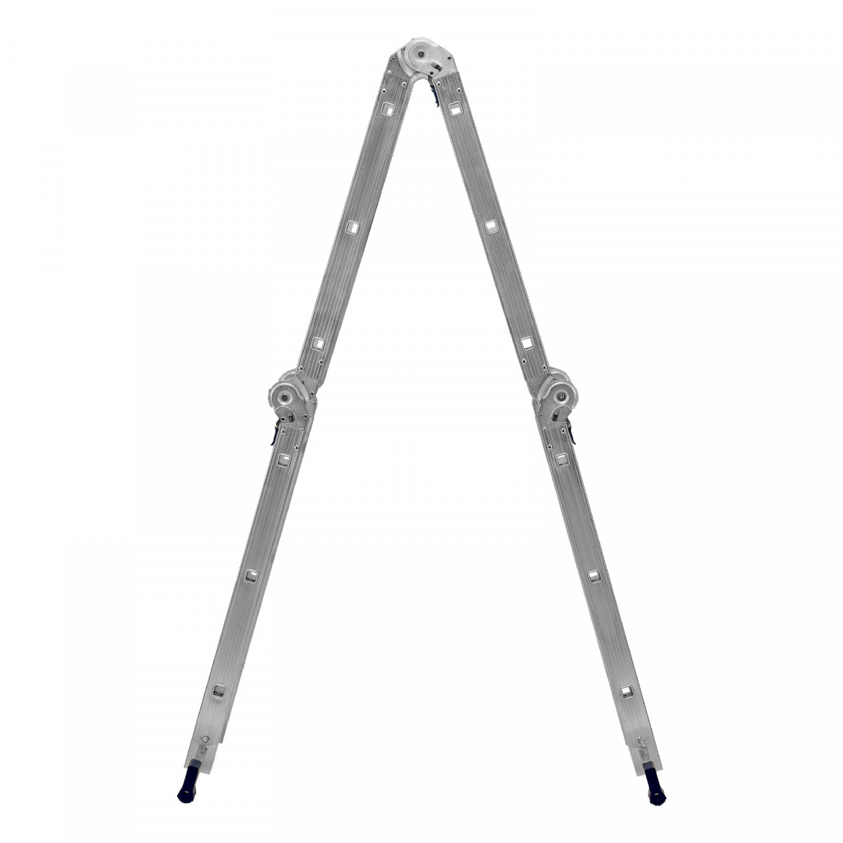 Шарнирная алюминиевая лестница Сибртех 97881 представляет собой 4 секции по 3 ступени, которые можно настроить в нескольких рабочих положениях. Она может использоваться в качестве приставной лестницы, двухсторонней стремянки и помоста. Будет полезна как в быту, так и на небольших стройках, в гараже и магазинах.
