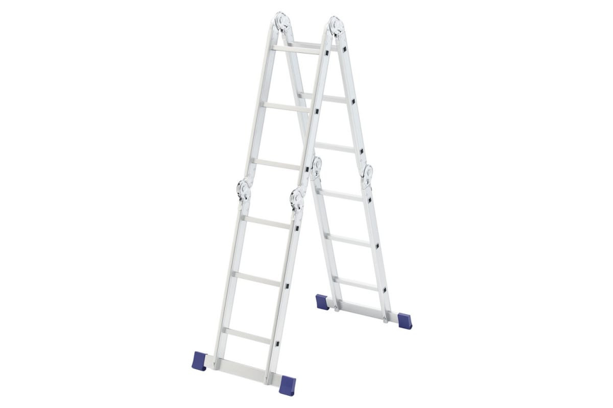 Шарнирная алюминиевая лестница СИБРТЕХ 4х3 97881 может трансформироваться в зависимости от выполняемых работ.Отличается надежной, устойчивой конструкцией, быстрой сменой положения за счет шарнирных механизмов.Защиту от скольжения на рабочих поверхностях обеспечивают заглушки и широкие траверсы.