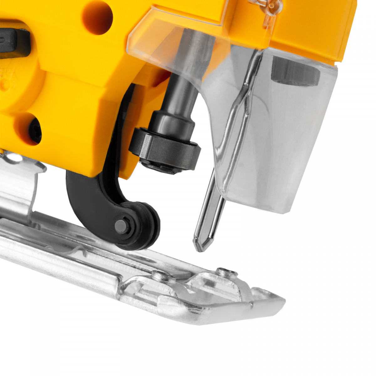 - Одинаковая эффективность при прямой и фигурной резке — усовершенствованный механизм главного движения исключает отклонение пильного полотна в сторону.