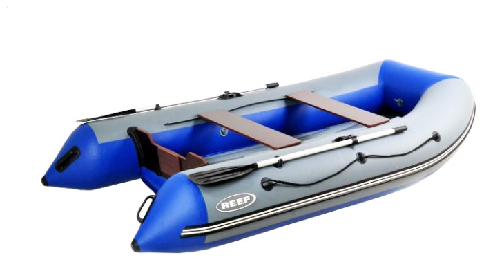 Надувная моторно-гребная лодка REEF 300НД оснащена полом низкого давления. Данный вид днища позволяет значительно сократить время на сборку/разборку лодки. Еще одним преимуществом является уменьшение веса лодки и более компактная упаковка в одну сумку. Мотор, устанавливаемый на REEF 300НД должен иметь мощность не больше 10 л.с.