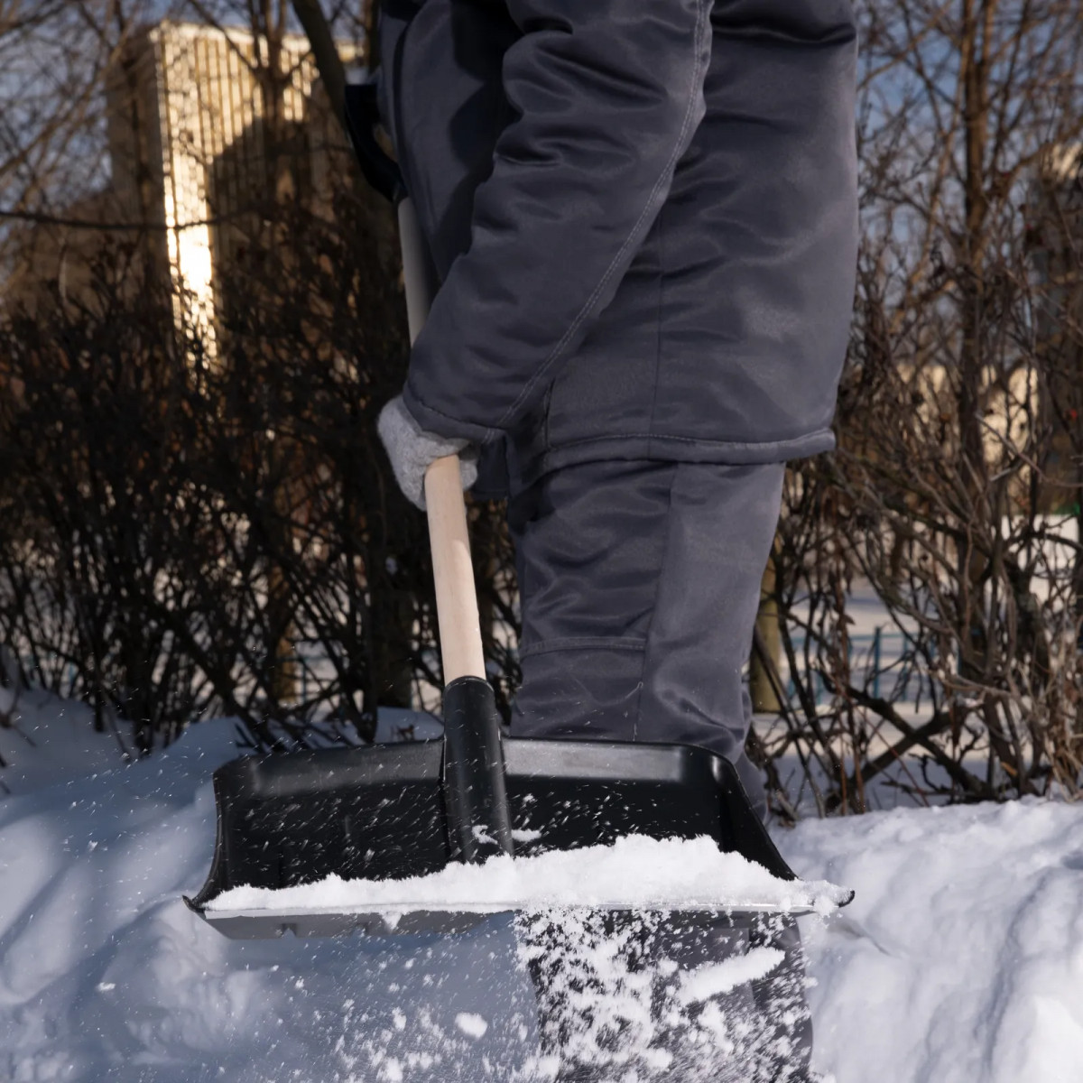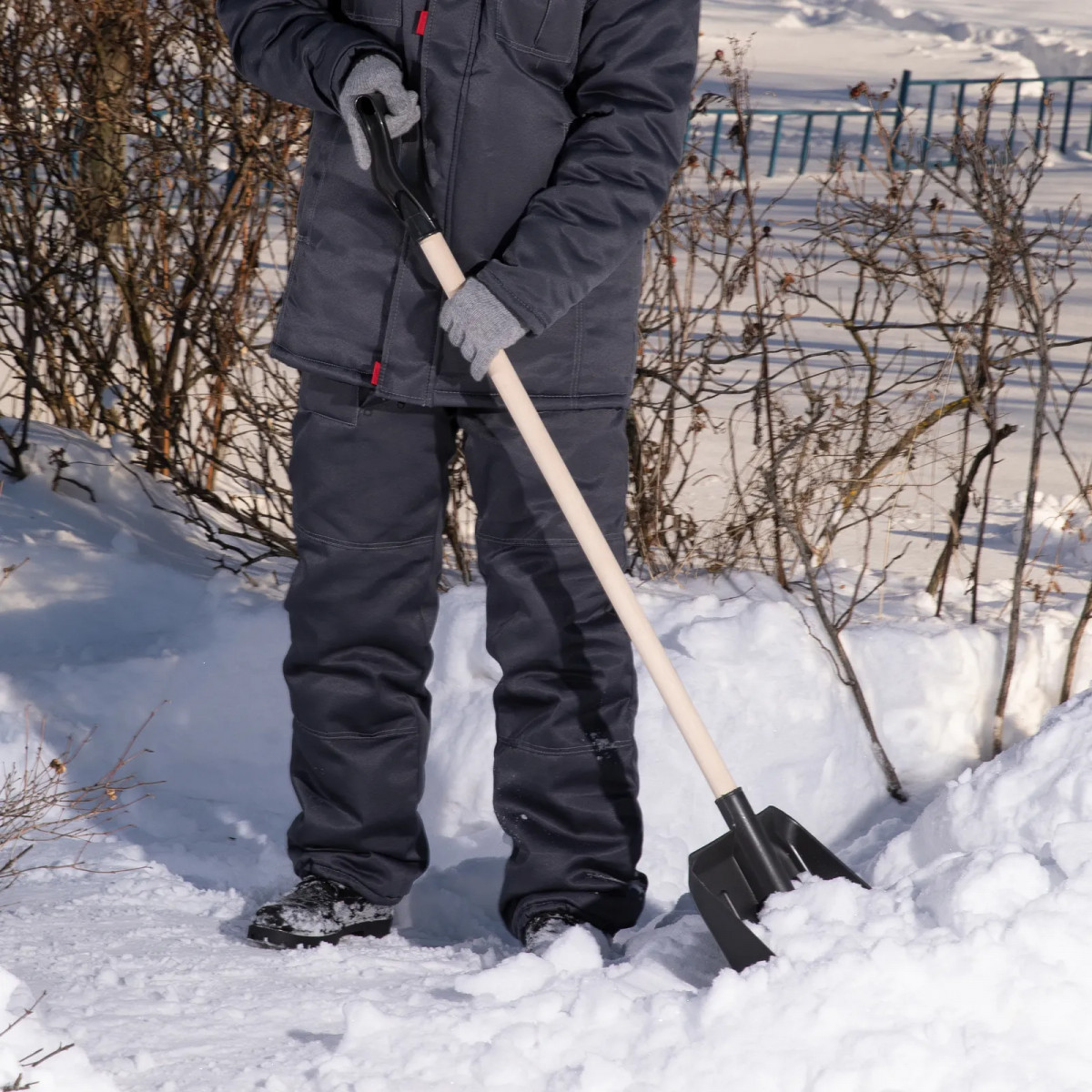Лопата для уборки снега пластиковая 405х420х1415 мм деревянный черенок Sparta