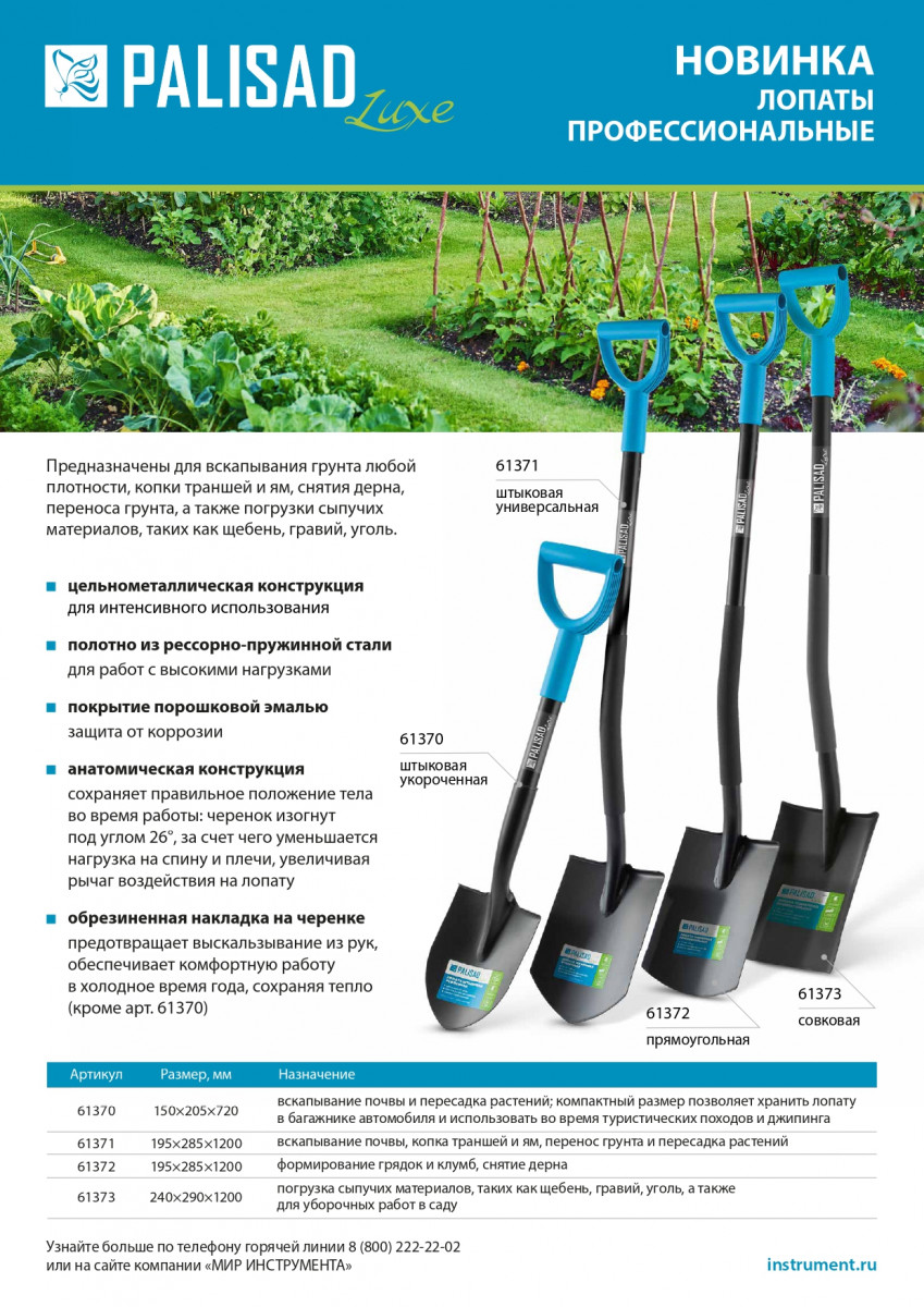 - Высокое качество — сварное соединение между полотном и черенком обеспечивает прочность инструмента.