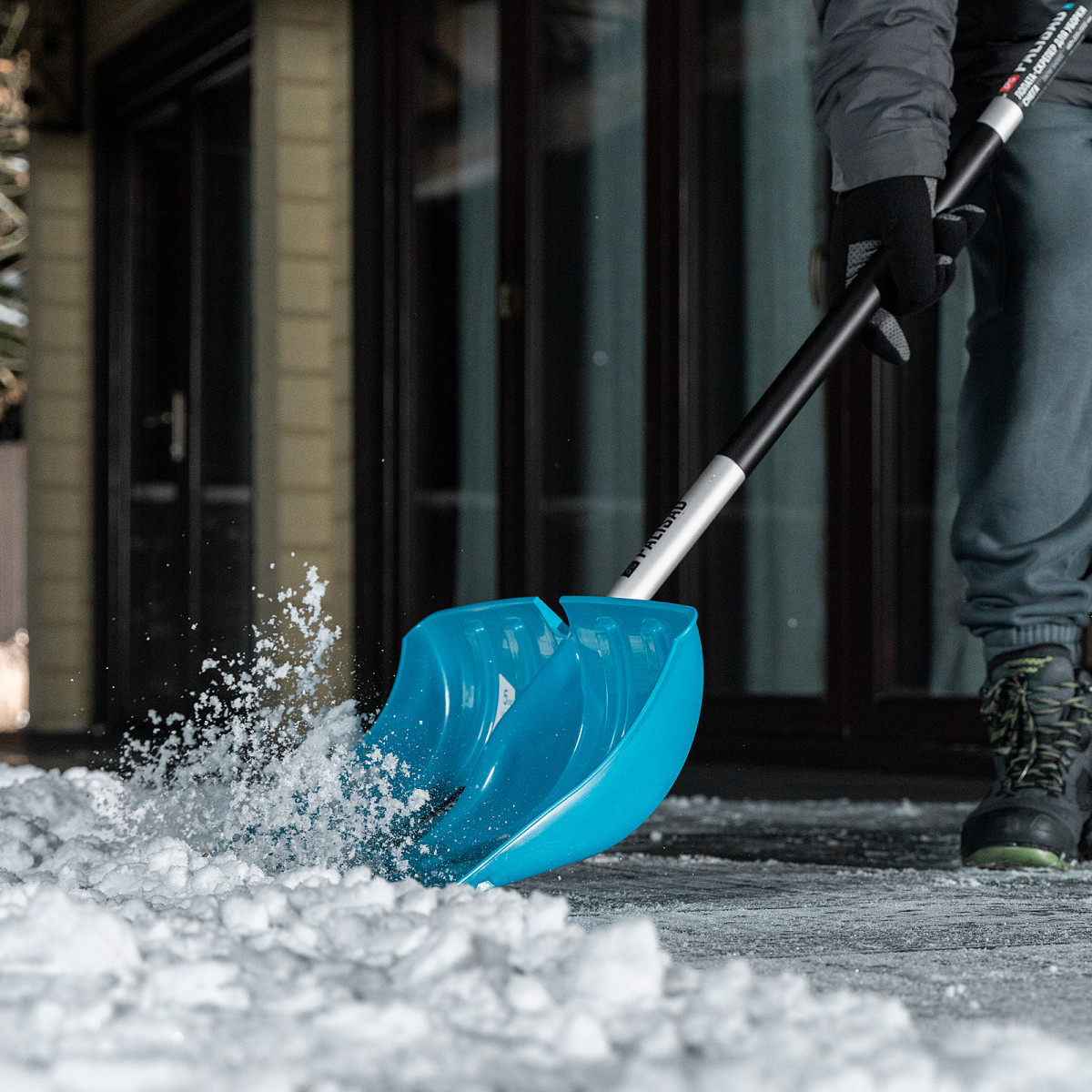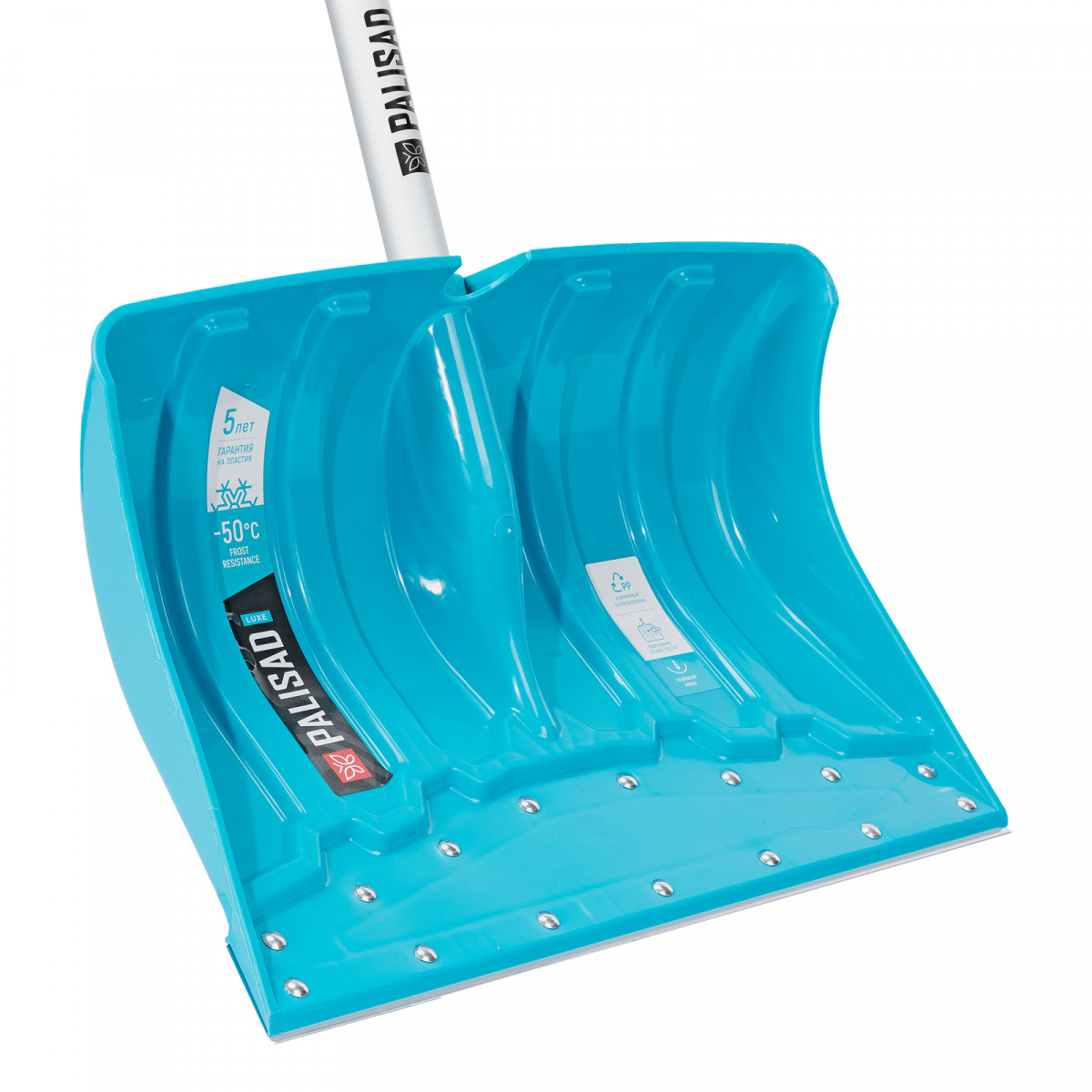 Лопата-скрепер Palisad LUXE 61797 размером 460 x 320 x 1300 мм, с ковшом из полипропилена и алюминиевым черенком с ПВХ-накладкой, предназначена для уборки снега. Широкий ковш с бортиками вмещает большое количество снега. Лопата позволяет расчистить садовую дорожку, тротуар, площадку перед гаражом и т.д.