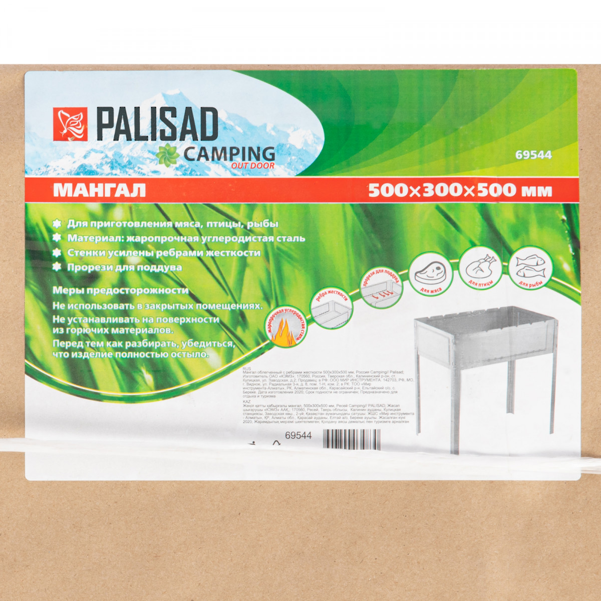 Мангал облегченный с ребрами жесткости 500 х 300 х 500 мм, Camping Palisad