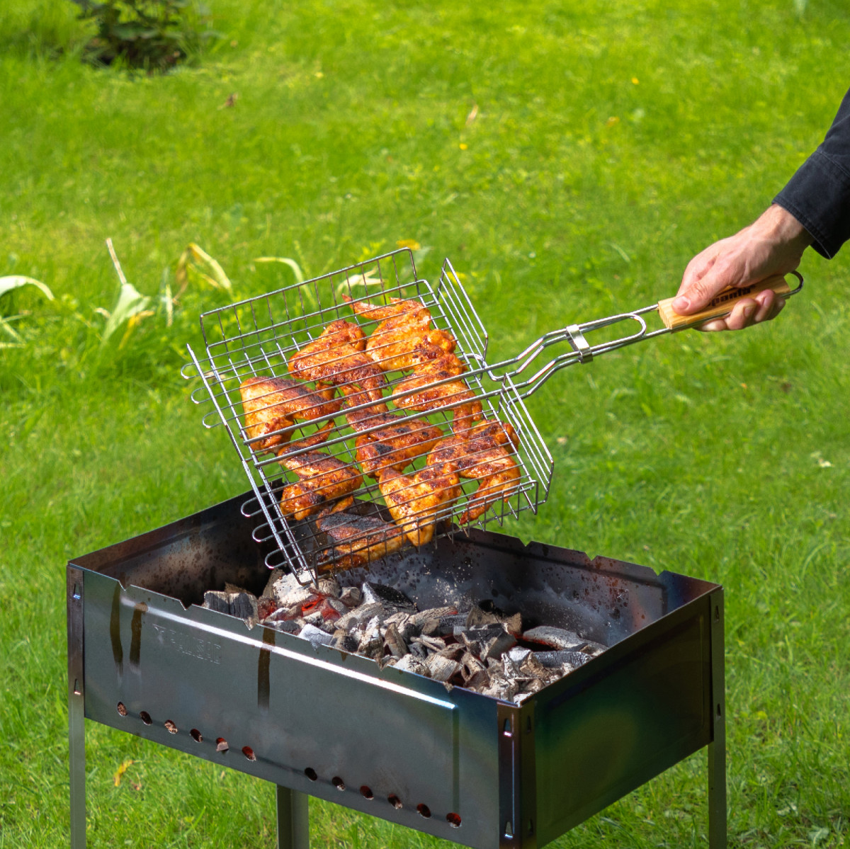 - Долговечность — мангал из жаропрочной углеродистой стали выдерживает длительное использование.