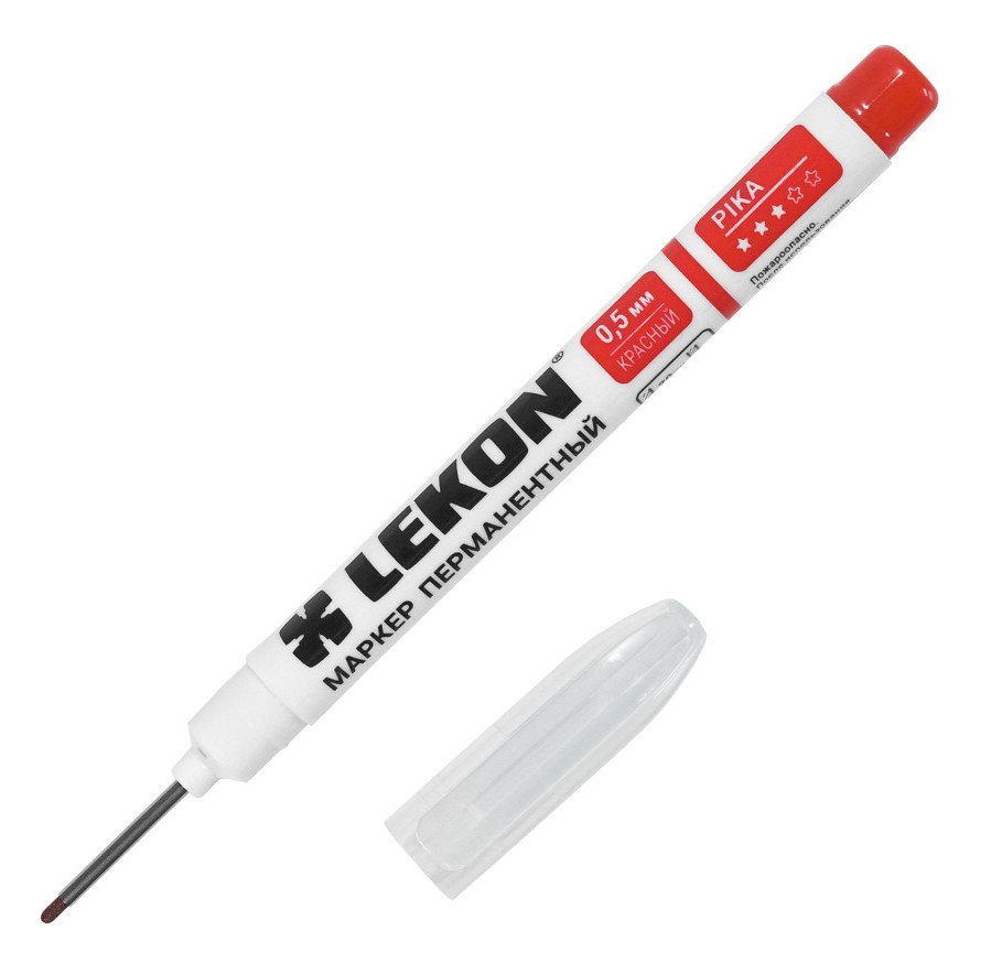 Маркер перманентный фетровый 0.5мм удлиненный наконечник красный LEKON Pika