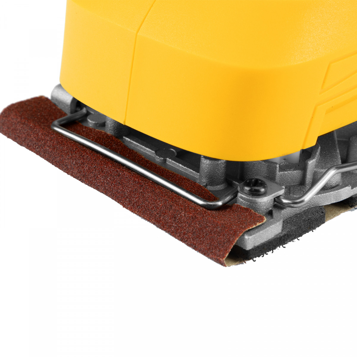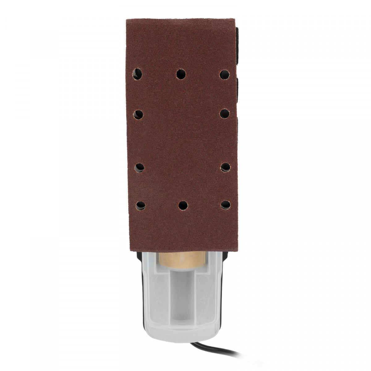- Универсальное крепление — можно использовать как абразивный материал на липучках (VELCRO), так и обычную шлифовальную бумагу.