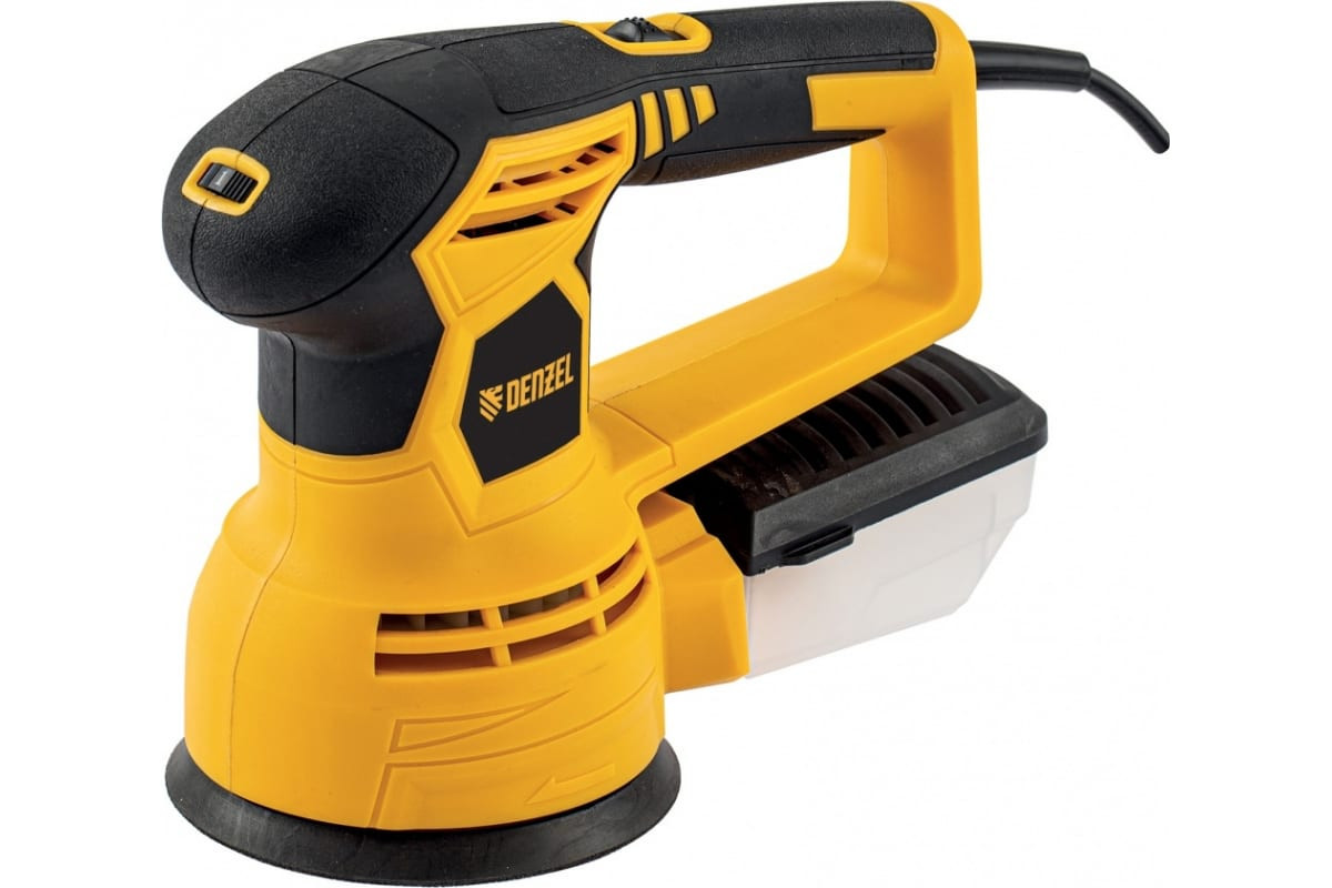 Встроенная система пылеудаления. Встроенный импеллер собирает пыль и направляет ее в контейнер. Жесткий пылесборник может использоваться на всех моделях шлифовальных машин Denzel.