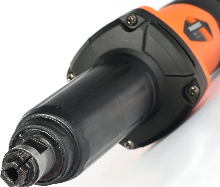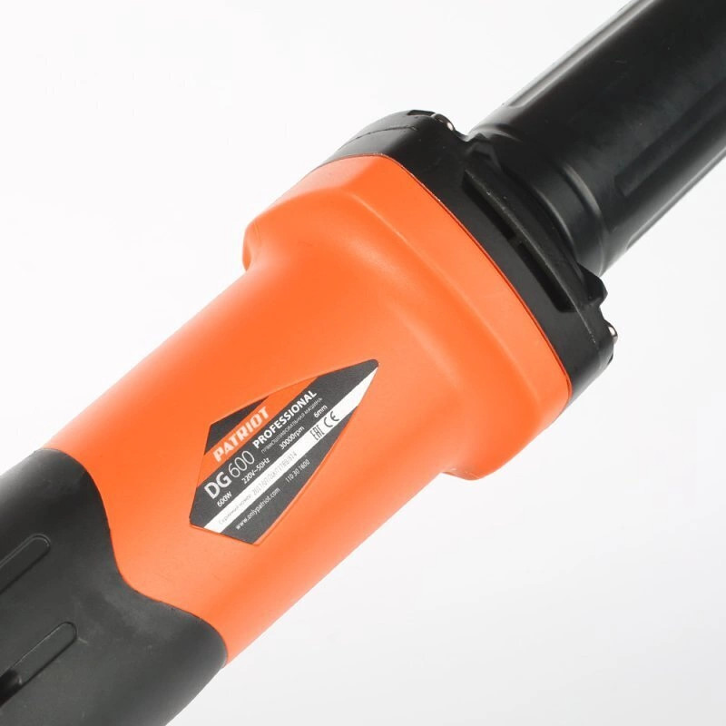 Прямошлифовальная машина PATRIOT DG 600  предназначена для полировки и шлифовки сложных и труднодоступных поверхностей, удаления заусенцев и ржавчины. Для быстрой смены оснастки, а также для ее надежной фиксации данная модель оснащена цанговым зажимом 6 мм. Удобство при продолжительной работе обусловлено наличием фиксации кнопки включения. Прорезиненная рукоятка ExtraGrip отвечает за надежный хват и полный контроль над инструментом в процессе работы. Конструкция позволяет быстро заменить угольные щетки без обращения в сервисный центр.
