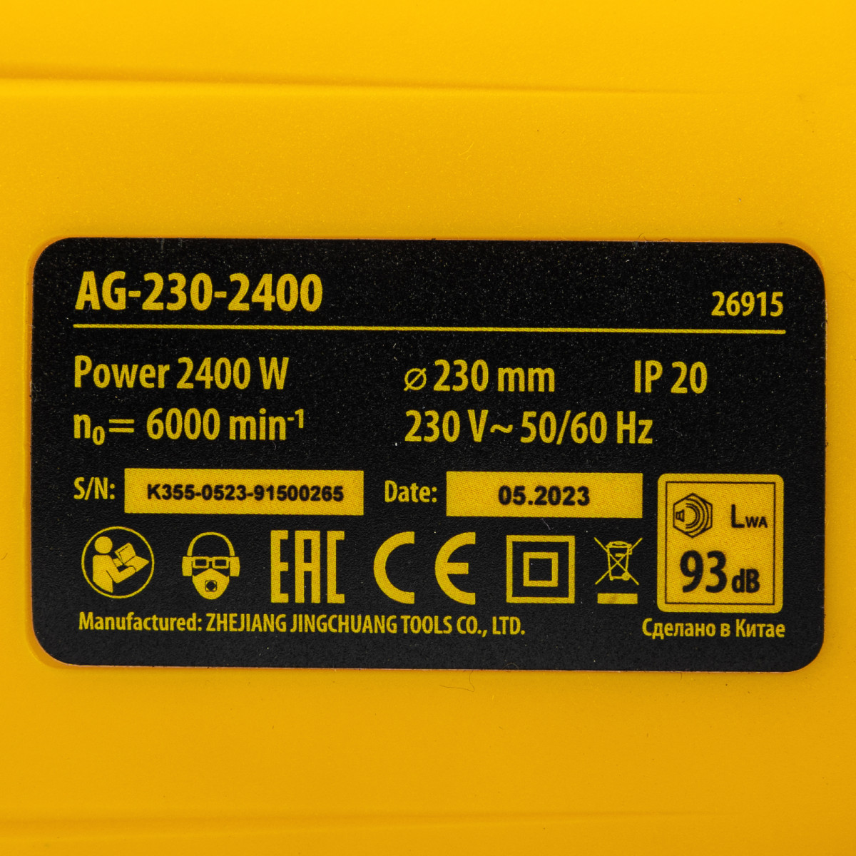 Машина шлифовальная угловая AG230-2400, 2400 Вт, 230 мм, 6000 об/мин Denzel