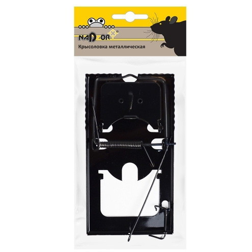 Металлическая крысоловка с мощным пусковым механизмом в индивидуальной упаковке.