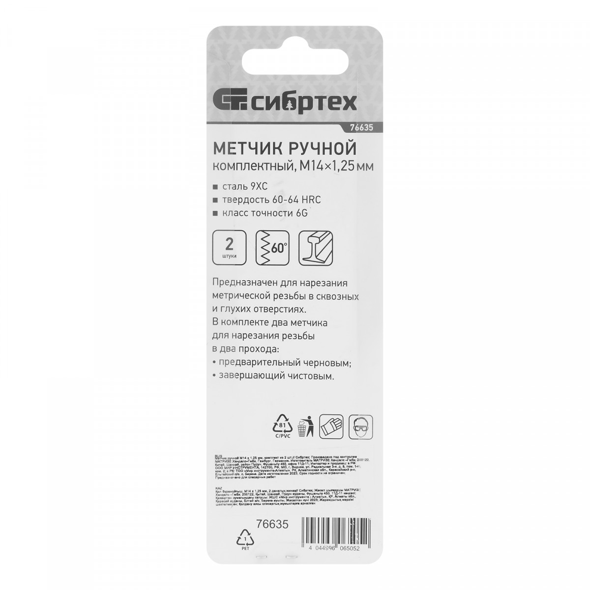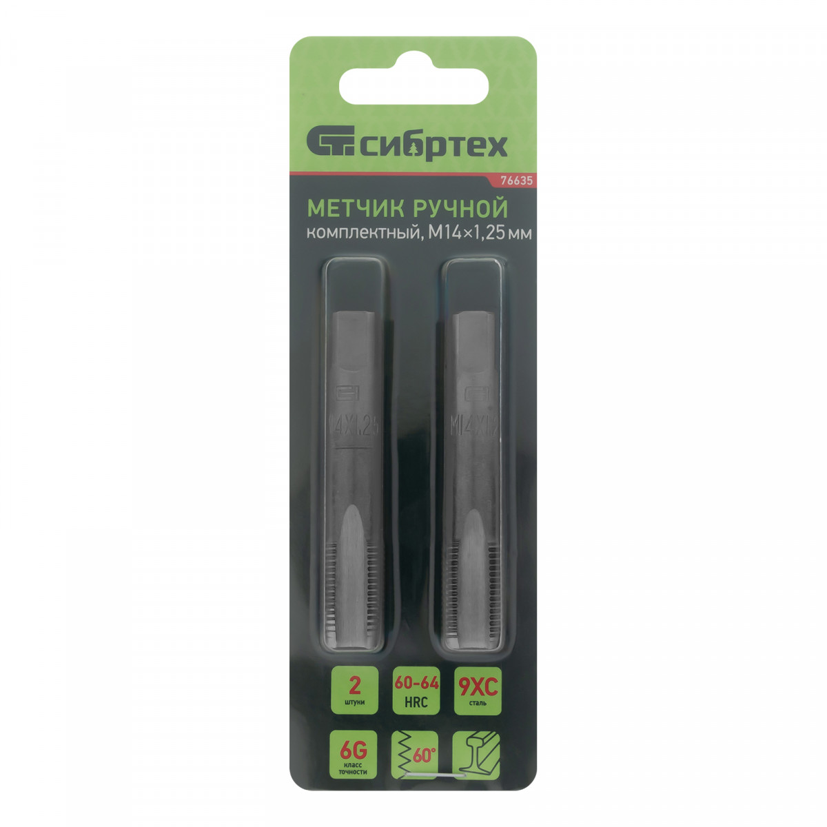 Метчик ручной М14 х 1.25 мм, комплект из 2 шт Сибртех