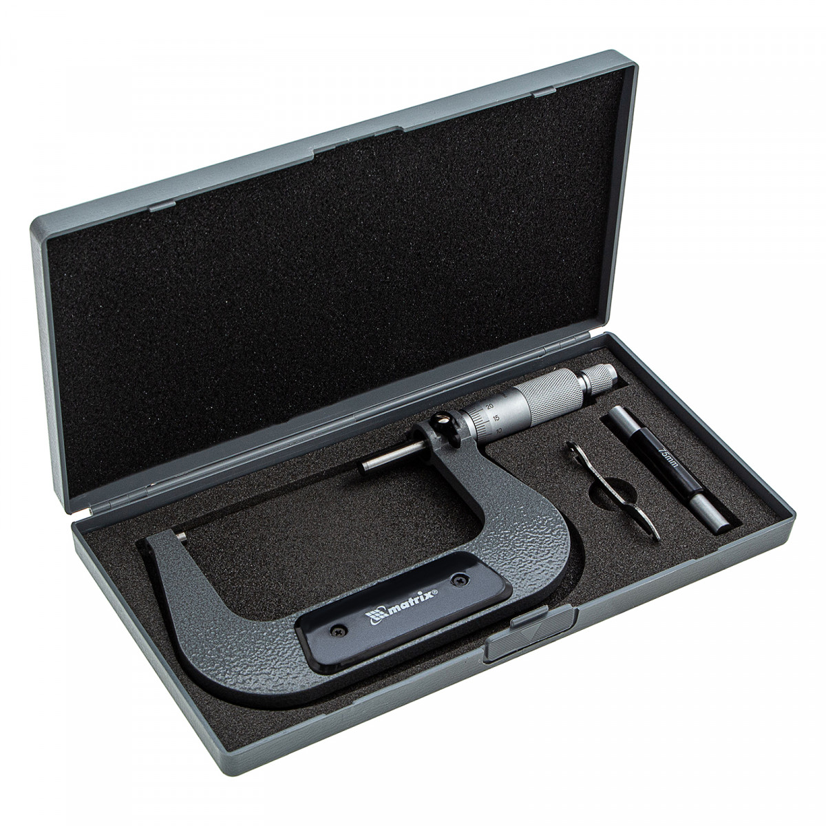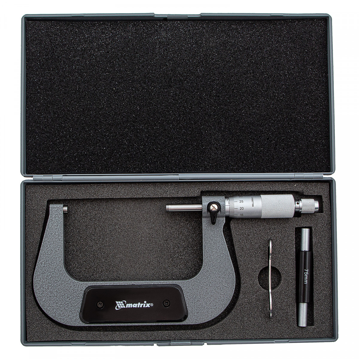Микрометр механический Matrix 317005 используется для измерения толщины листового металла и деталей размером 75-100 мм. Обеспечивает высокую точность результатов — шаг измерения составляет 0,01 мм с допустимой погрешностью ±0,004 мм. Комплектуется установочной мерой, позволяющей при необходимости произвести настройку прибора. Микрометр будет полезен на производстве, в слесарной мастерской и автосервисе.