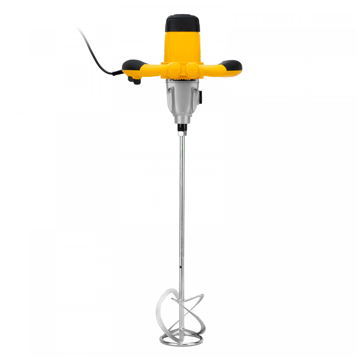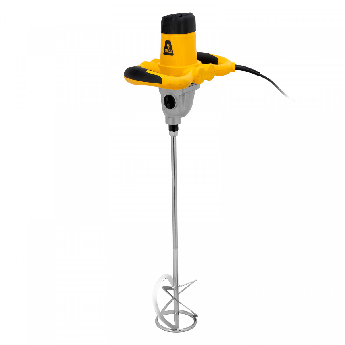 Миксер строительный Denzel EM-1-1220 27903 мощностью 1220 Вт предназначен для смешивания различных смесей, растворов, лакокрасочных материалов на скорости 0-480/0-800 об/мин при проведении строительных и ремонтных работ. Эффективно работает с мелким щебнем и крупнодисперсными смесями, а высокий крутящий момент 107 Н⋅м позволяет смешивать даже вязкие растворы. Миксер предназначен для бытового применения.