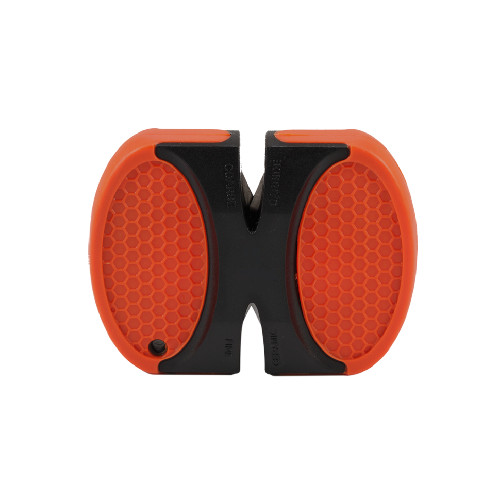 Одна из поверхностей модели сделана из карбид-вольфрама, и подходит для грубой заточки сильно затупившихся лезвий. Вторая поверхность из керамики служит для тонкой заточки и финишной обработки. Для затачивания инструмента установите его на жесткую и не скользкую поверхность. Затем необходимо удерживать лезвие прямо и несколько раз плавно провести от основания клинка к острию.