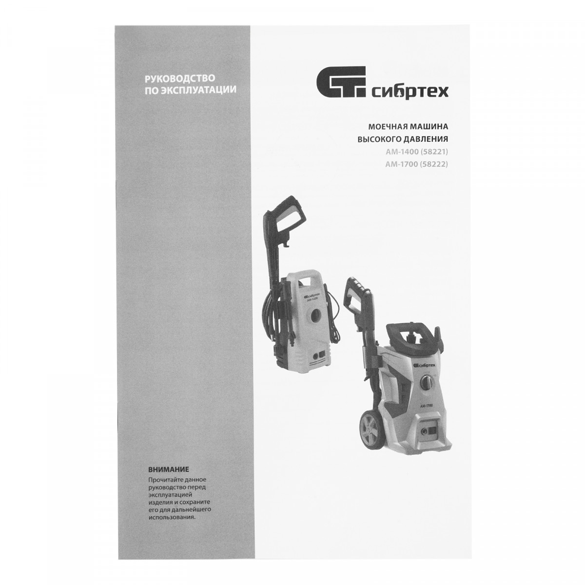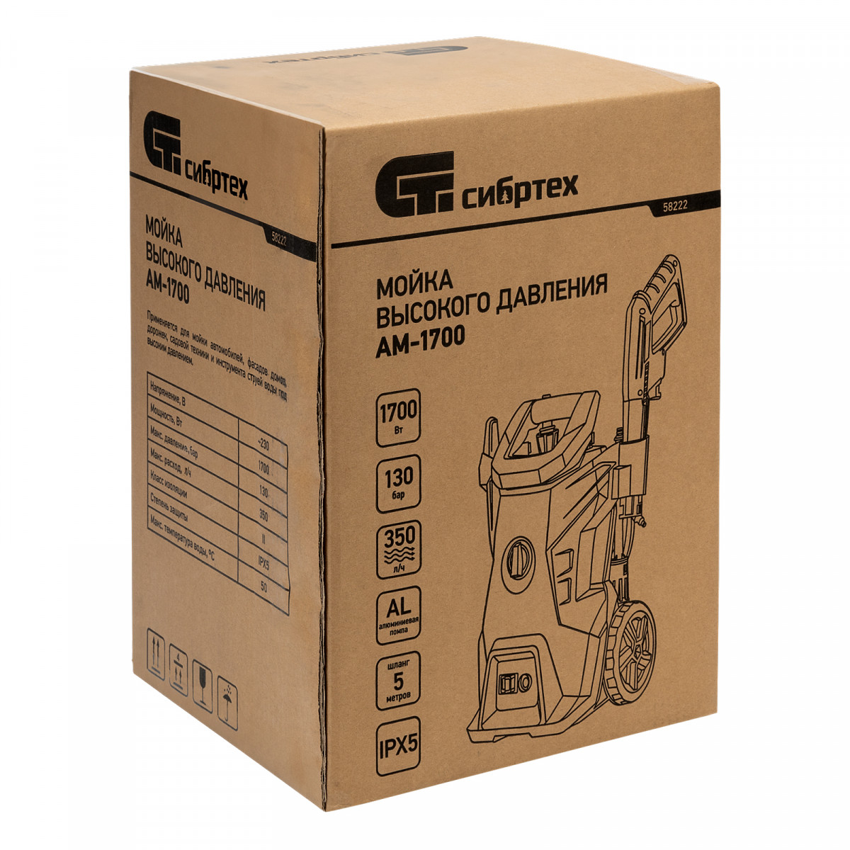 Моечная машина высокого давления АМ-1700, 1700 Вт, 130 бар, 350 л/ч, колесная Сибртех