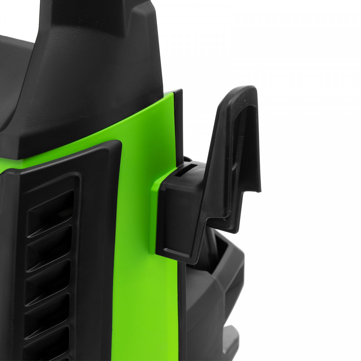 • Продуманное хранение и транспортировка — машина снабжена удобной ручкой и колесами, для кабеля и шланга предусмотрены специальные кронштейны.