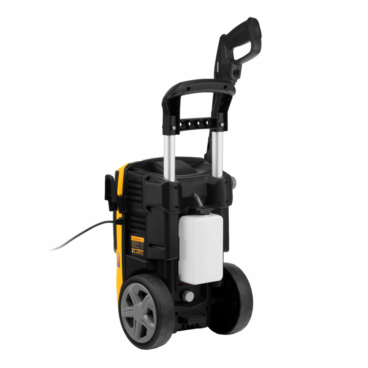Колесная моечная машина высокого давления Denzel R-180 58238 мощностью 2200 Вт и производительностью 380 л/ч подает струю воды под давлением 180 бар и служит для очищения поверхностей. Позволяет быстро привести в порядок садовые дорожки, удалить пыль и грязь с фасада здания, автомобиля, велосипеда или мотоцикла, отмыть садовый инвентарь. Моечная машина подключается к водопроводу, а при его отсутствии может забирать воду из любого резервуара, работая в режиме самовсасывания. Устройство пригодится для поддержания порядка на загородном участке.