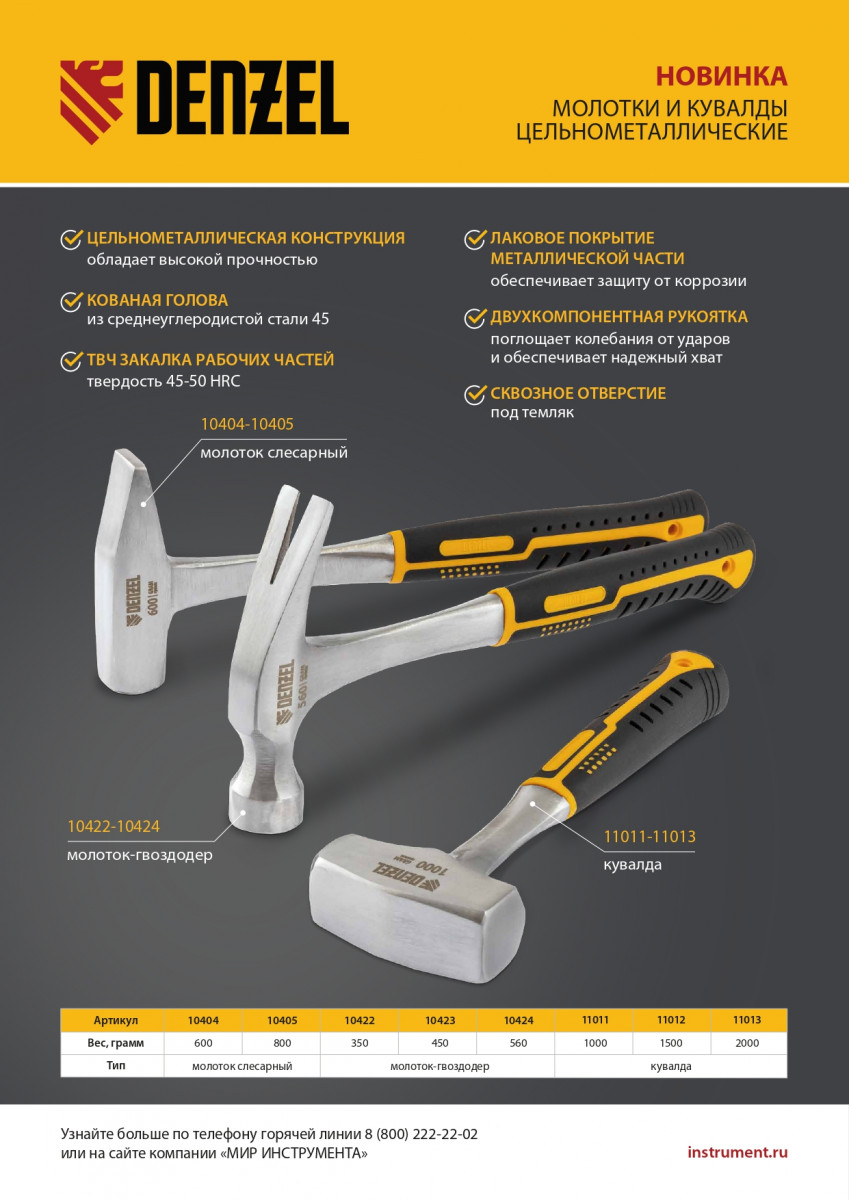 • Надежная конструкция — поломка цельнометаллического молотка исключена.