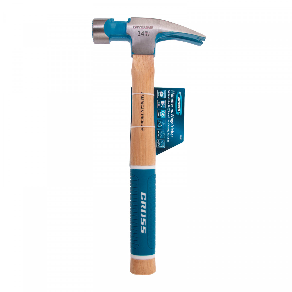 Молоток-гвоздодер, 680 г, угол 75, магнит, обрезиненная рукоятка AMERICAN HICKORY GROSS