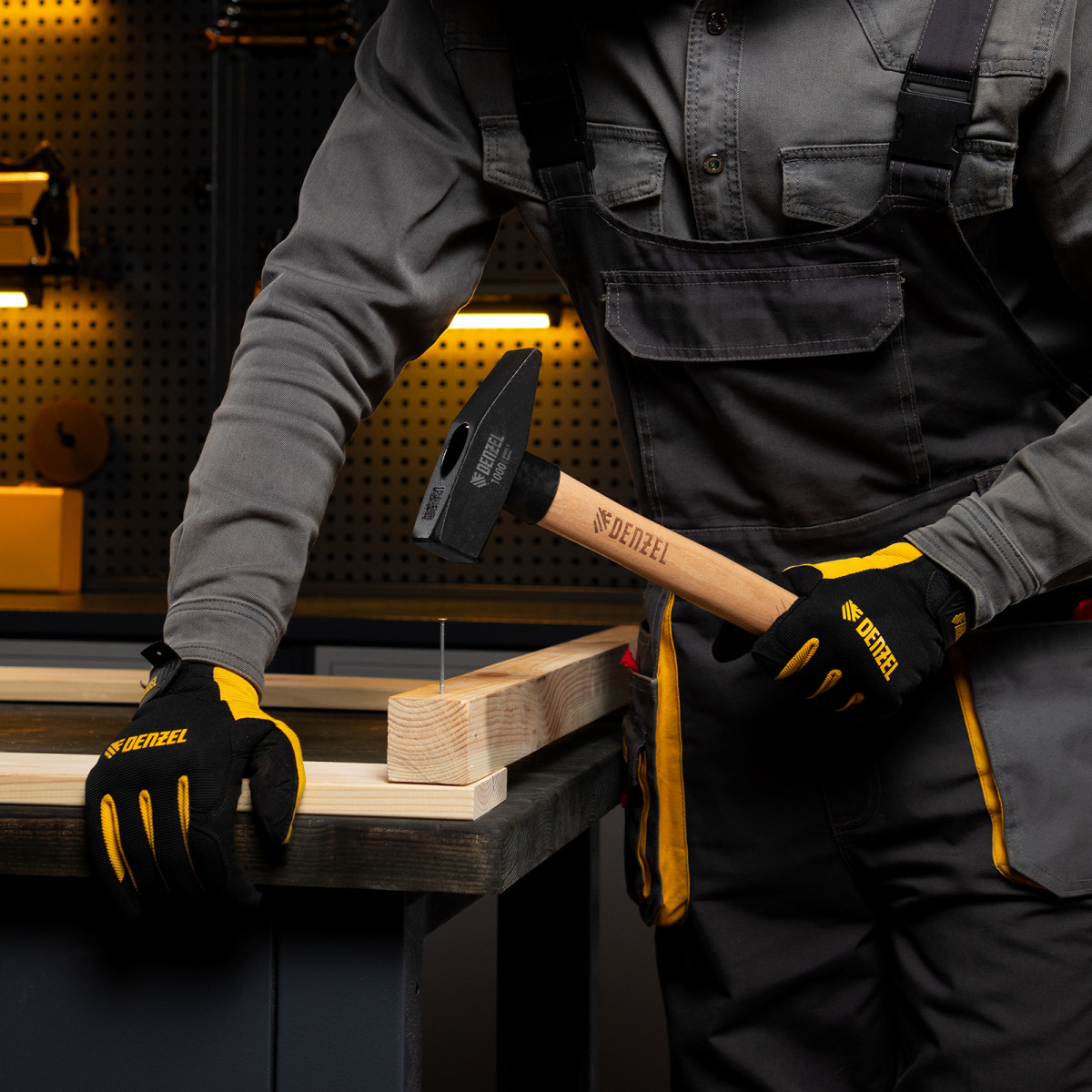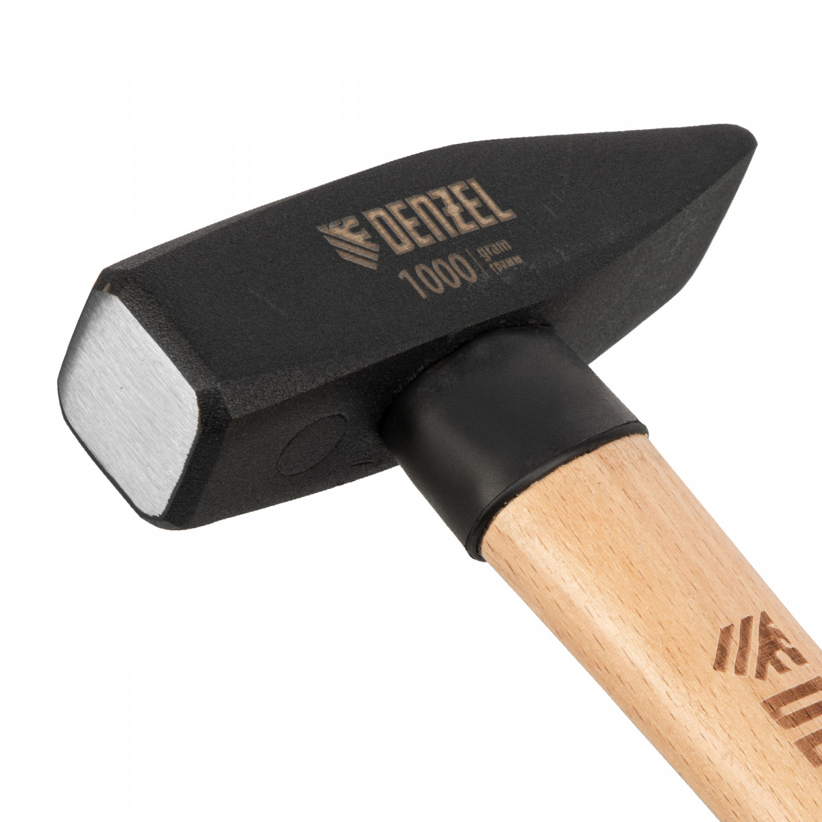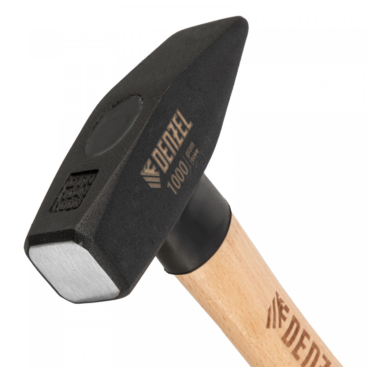 Молоток слесарный, 1000 г, кованый квадратный боек, буковая рукоятка Denzel