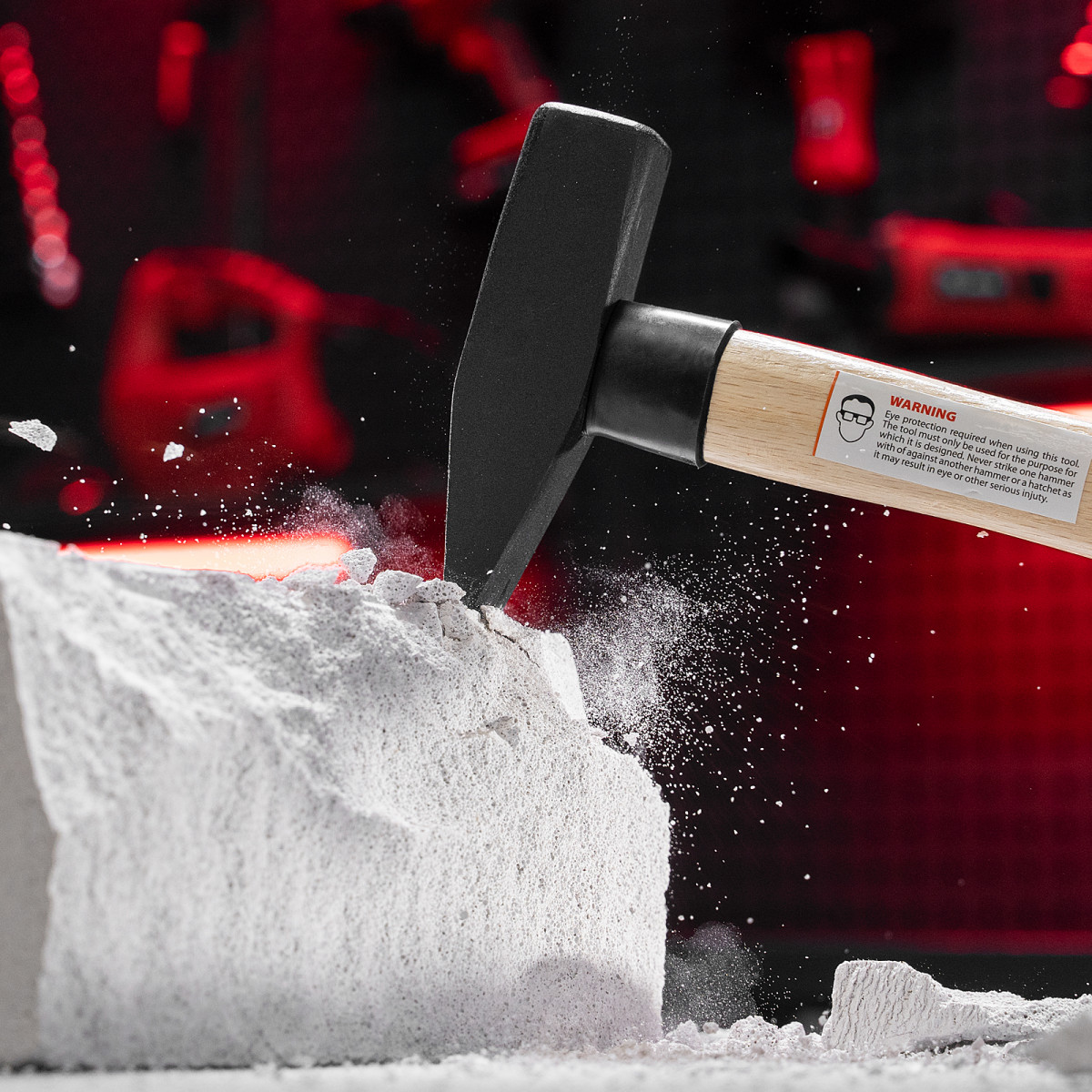 • Надежная конструкция — рукоятка расклинена, головка дополнительно зафиксирована эпоксидным клеем, увеличенная «юбка» в месте всада защищает рукоятку в случае промаха при ударе.